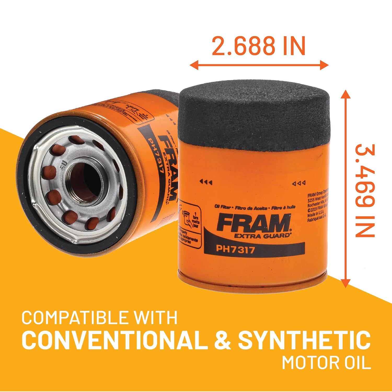 Customer Favorite — discover the FRAM Extra Guard PH7317 10K Mile Change Automotive Replacement Interval Spin-On Engine Oil Filter for Select Vehicle Model Years, Vehicle Engine Protection Oil Filter for… by Fram, built for performance and designed for life in the United States.