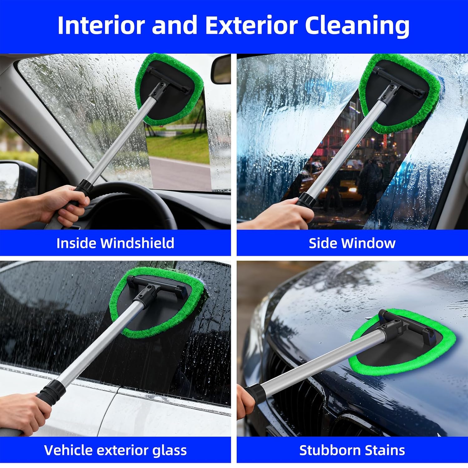 - Fast and Easy Windshield Cleaning: Effortlessly clean your car windows inside and out without straining your back. The extra-long extension handle and pivoting head make it easy to reach those tough spots on your car windows.
