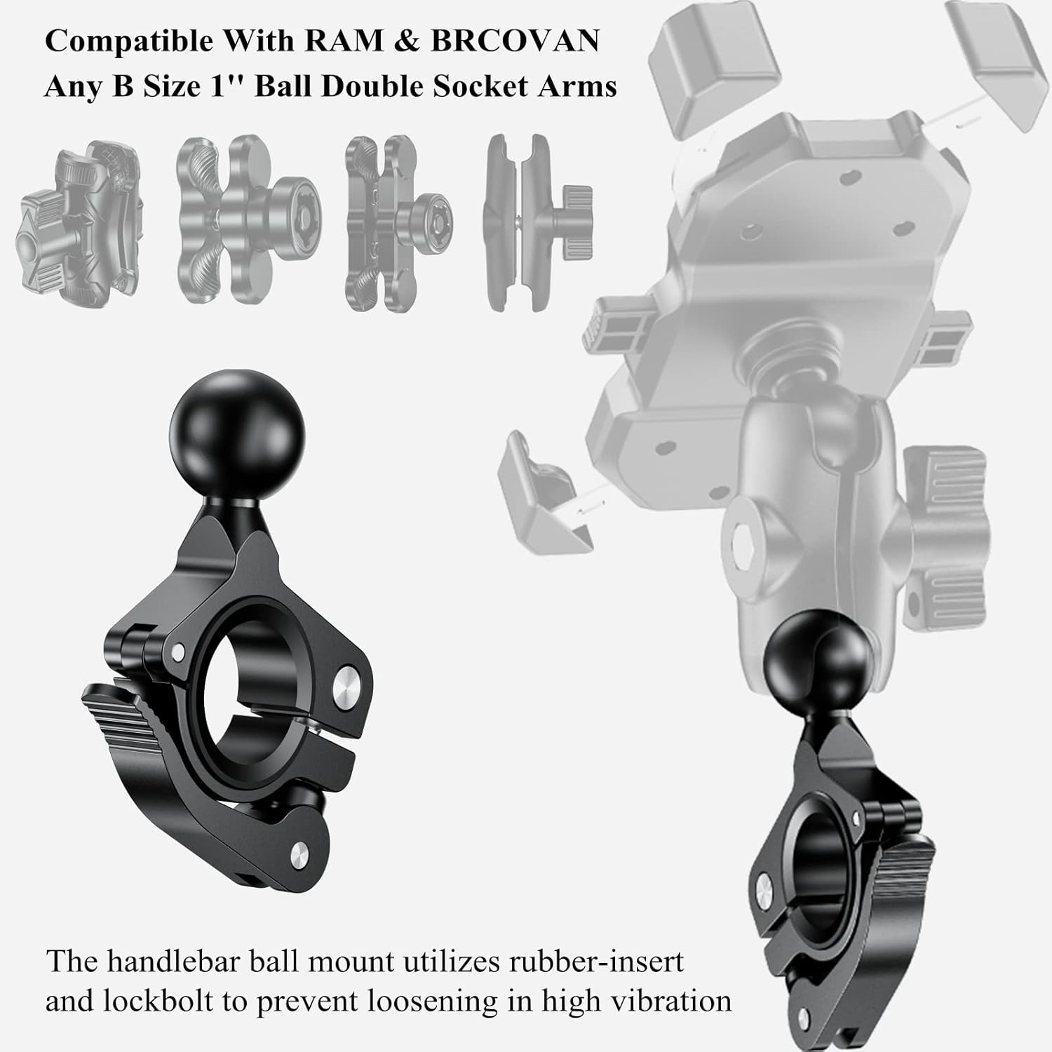 - This 1 inch ball handlebar mount compatible with RAM Mounts & BRCOVAN any B size 1” ball double socket arms. Work for other devices with 1 inch swivel ball mounting pattern