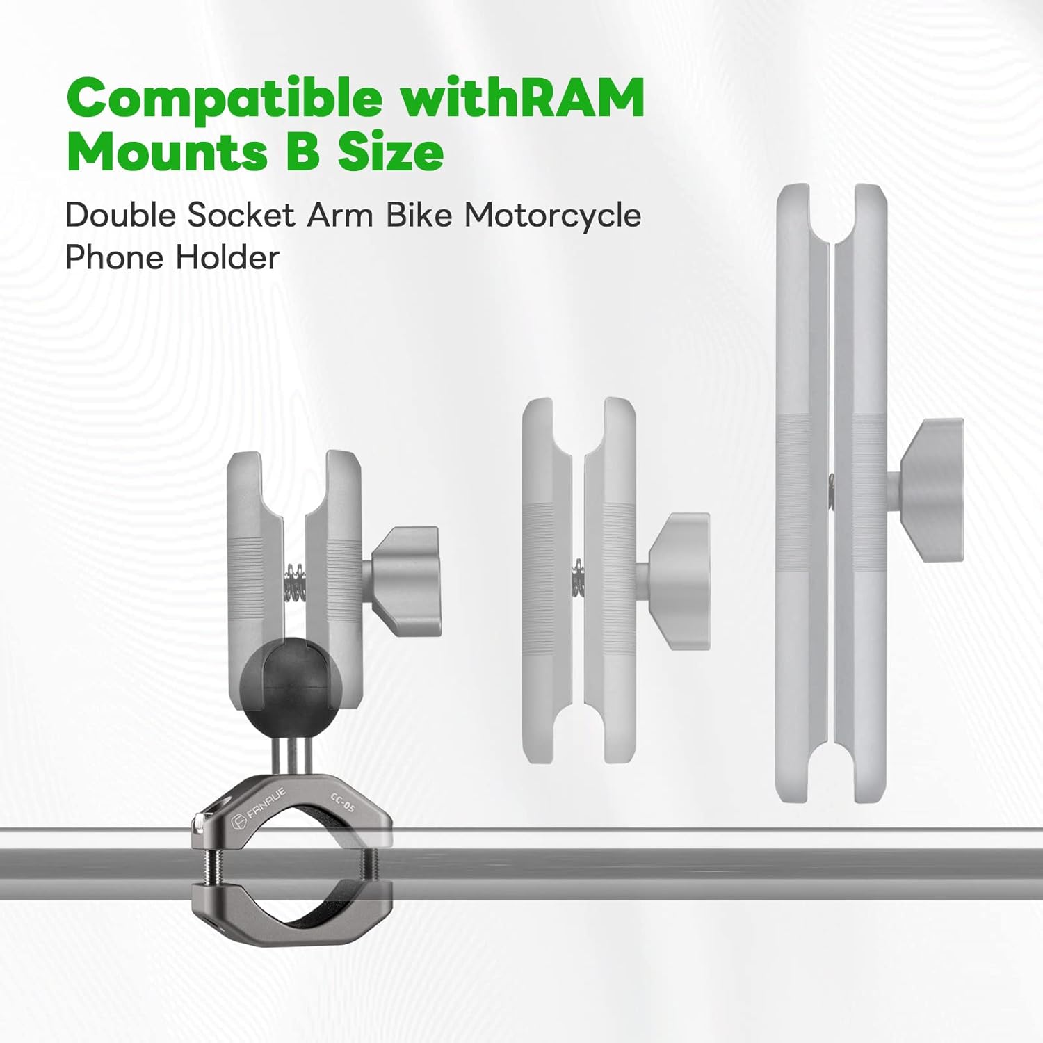 Specification: FANAUE Handlebar Clamp Mount U-bolt Base with B Size 1″ Ball for 0.85″ to 1.14″ Diameter Rail, Compatible with RAM Mounts B Size Double Socket Arm & Motorcycle Phone Mount by FANAUE