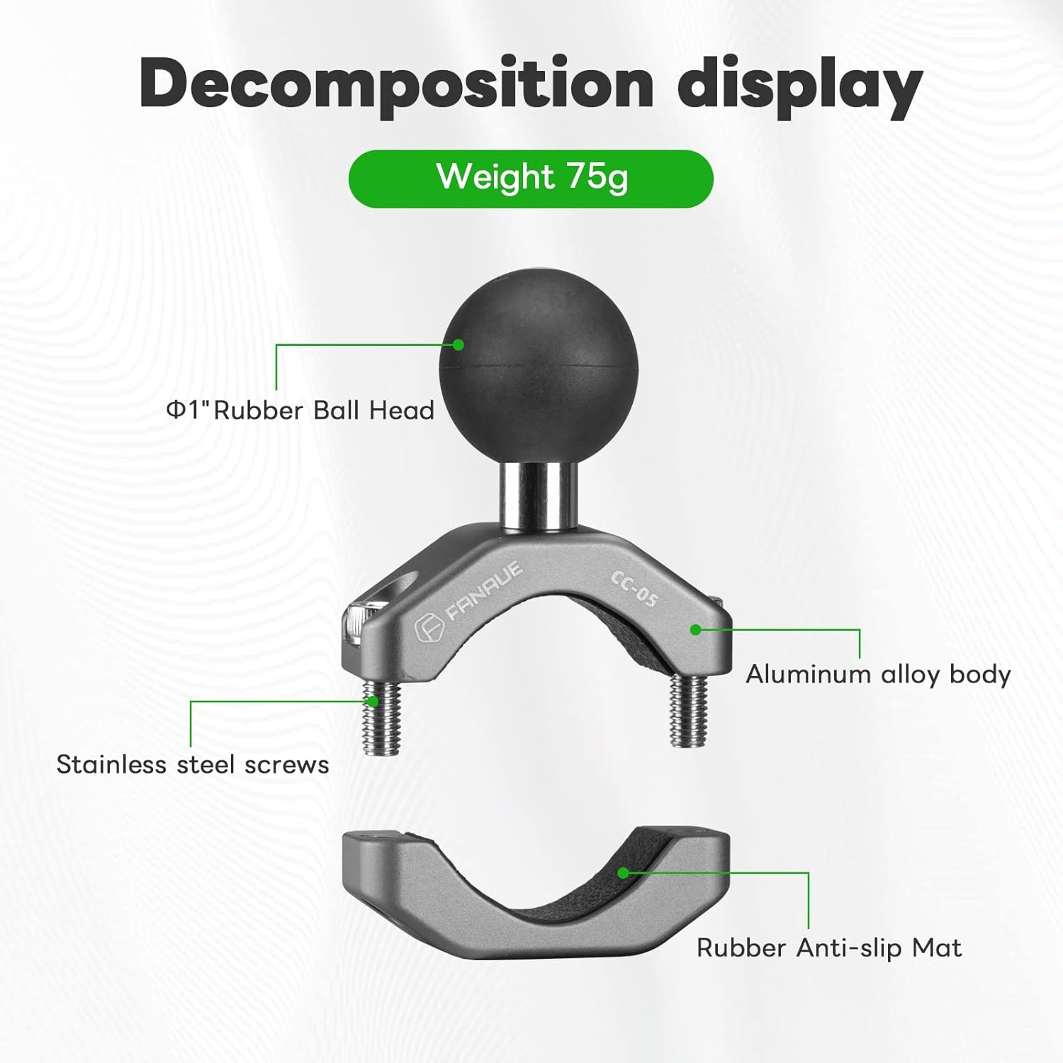 - ๐๏ธHIGH QUALITY: This Aluminum Handlebar Clamp Mount U-bolt Base is constructed from aluminum alloy with a Class III hard anodized finish for durability and reliability in the most demanding environments. The with B Size 1″ Ball head is rubber-coated, non-slip and wear-resistant.
