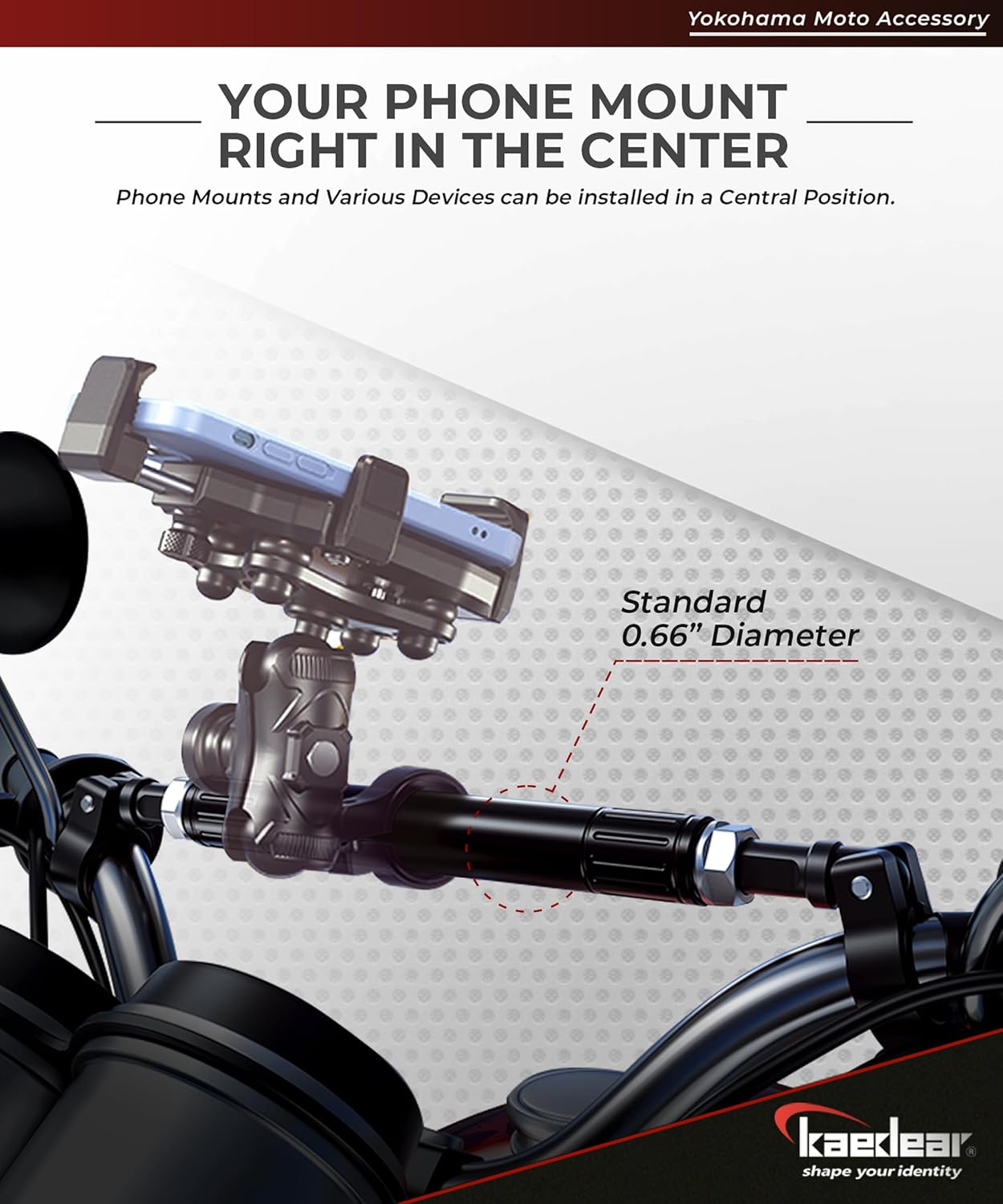 - [Adjustable Center Brace] Originally designed as a component to increase handlebar rigidity, handlebar braces are now widely used on bar-type handlebar, such as scooters and naked bikes, for purposes beyond their original function. They serve as mounting areas for accessories like smartphone holders and are also used for styling. Installing them can transform the look of the handlebar area and allows for the mounting of various devices and accessories, from smartphone holders to drive recorders.