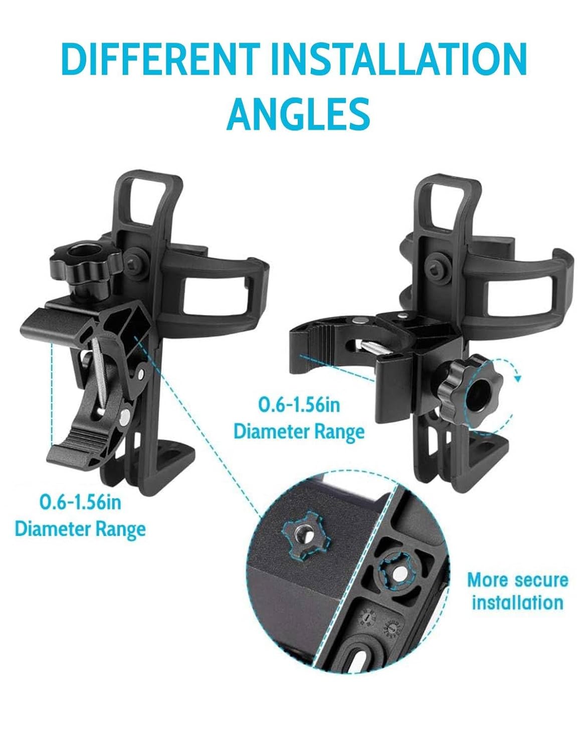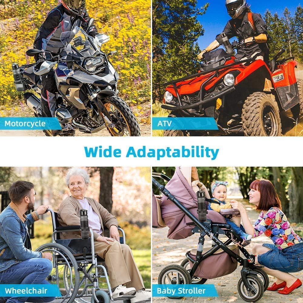 - Universal Compatibility: 0.6-1.56in Diameter range clamp design makes the drink holder used on ATV, motorcycle, bike, boat, wheelchair, stroller, walker, scooter, desks to meet your daily needs. Compatible with Stanley Contigo Nalgene water bottle