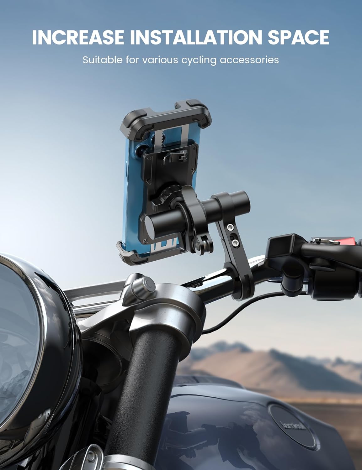 - 【 Increased Mounting Space】 This bicycle handlebar extender will not only provide extra space on your bike handlebar, but also improve the mounting position for improved visibility. Helps reduce clutter and provides more space for accessories like bike headlights, motorcycle phone holders, GPS, speedometer, camera and more.