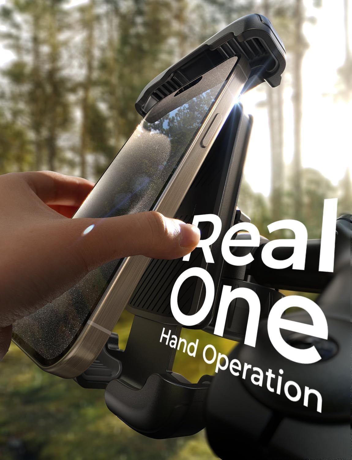 - [Ultra-Secure] With our uniquely designed bike phone holder mount, whether navigating bumpy roads or high-speed roads, your phone remains securely fastened to the handlebar. Its all-round shape firmly secures each corner of your phone, providing excellent stability. What’s more, our bike phone holder handlebar features a robust locking mechanism. Just focusing on riding. Your phone is safe and accessible at all times.