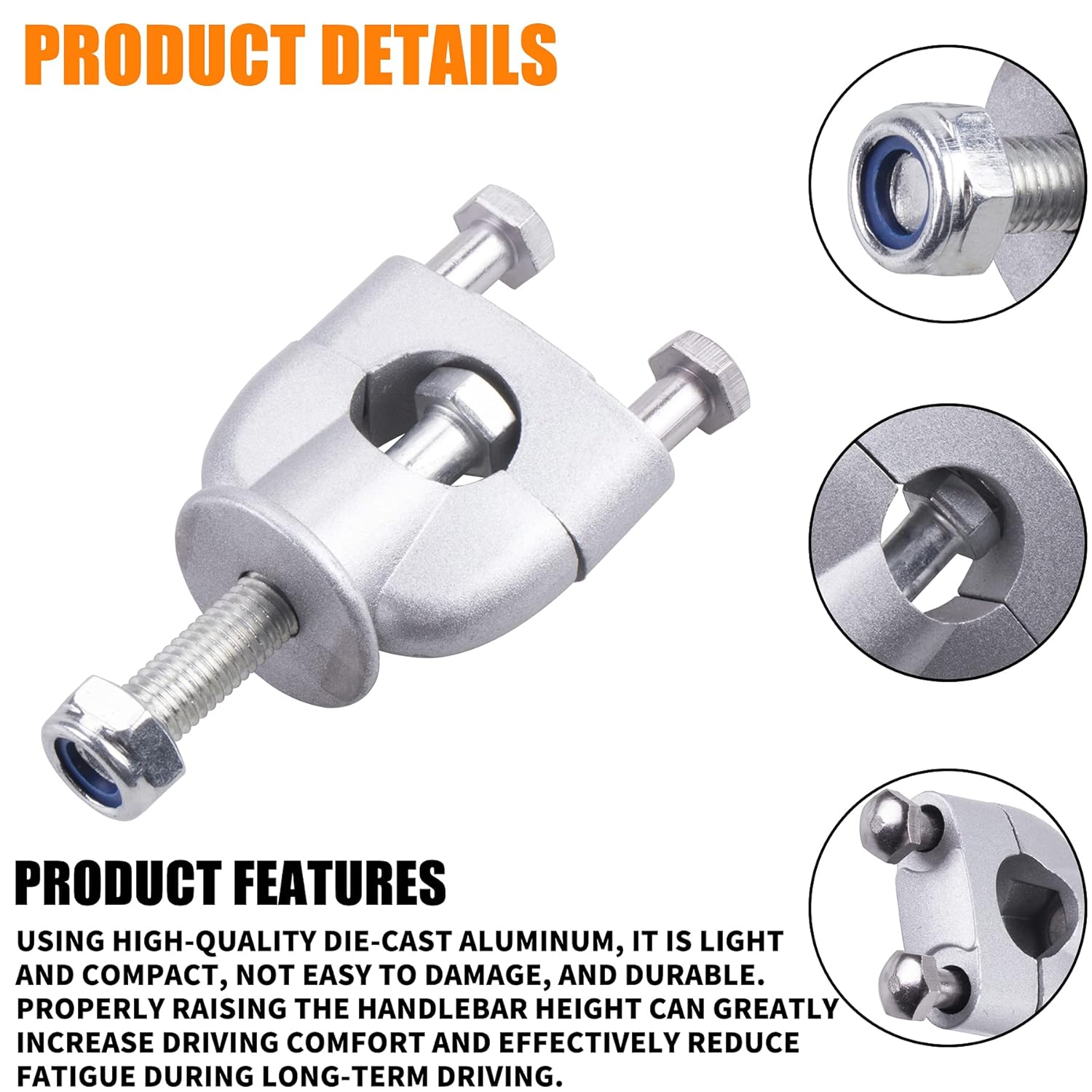 - Perfect match:Universal Motorcycle Handlebar Risers Mount Clamps,fit for ATV, motorcycles,dirt bikes, scooters ,quard etc with 7/8″22mm handlebars.