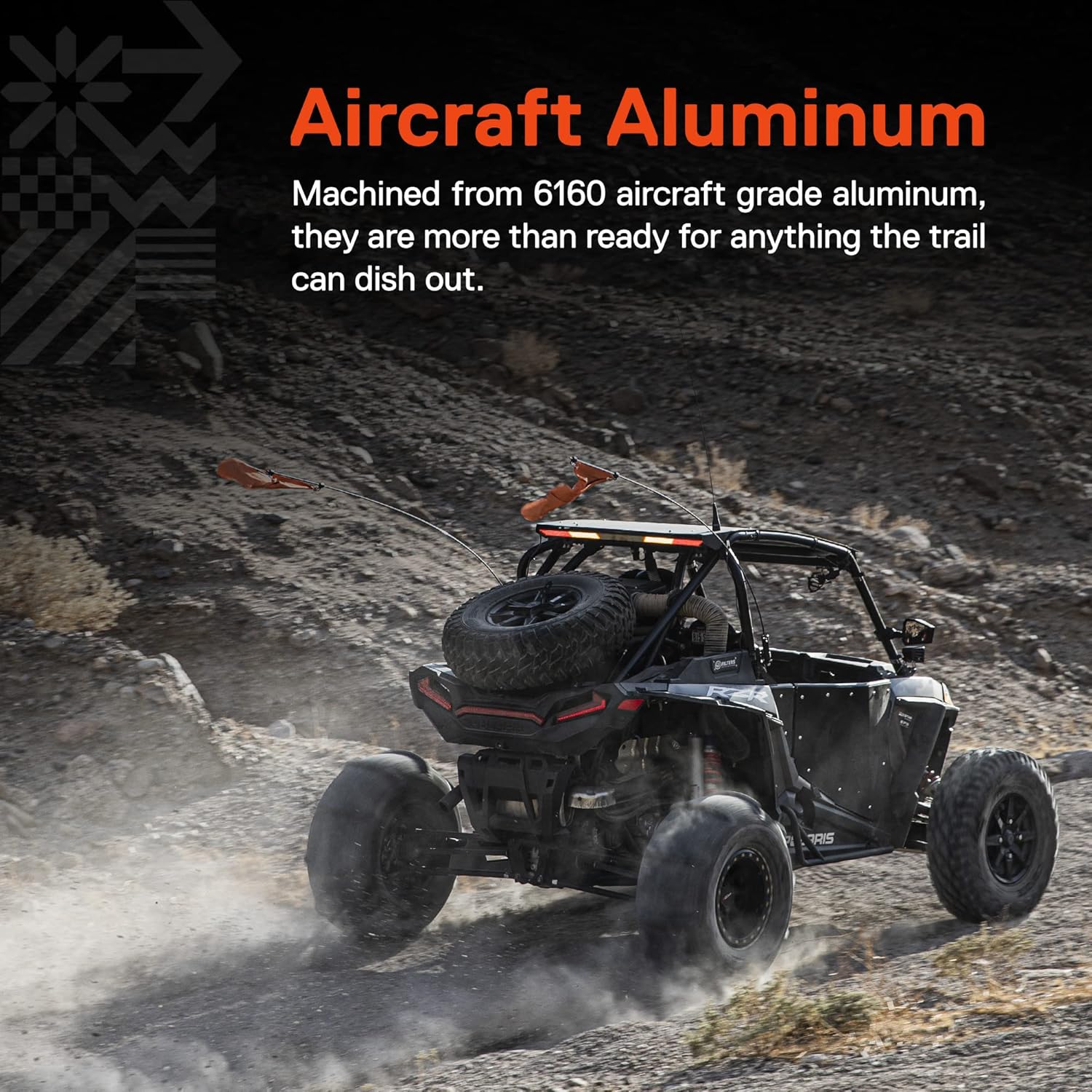 - AIRCRAFT ALUMINUM – The trails will test your equipment to the limit. Our whip bases are ready. Machined from 6160 aircraft grade aluminum, they??re more than ready for anything the trail can dish out.