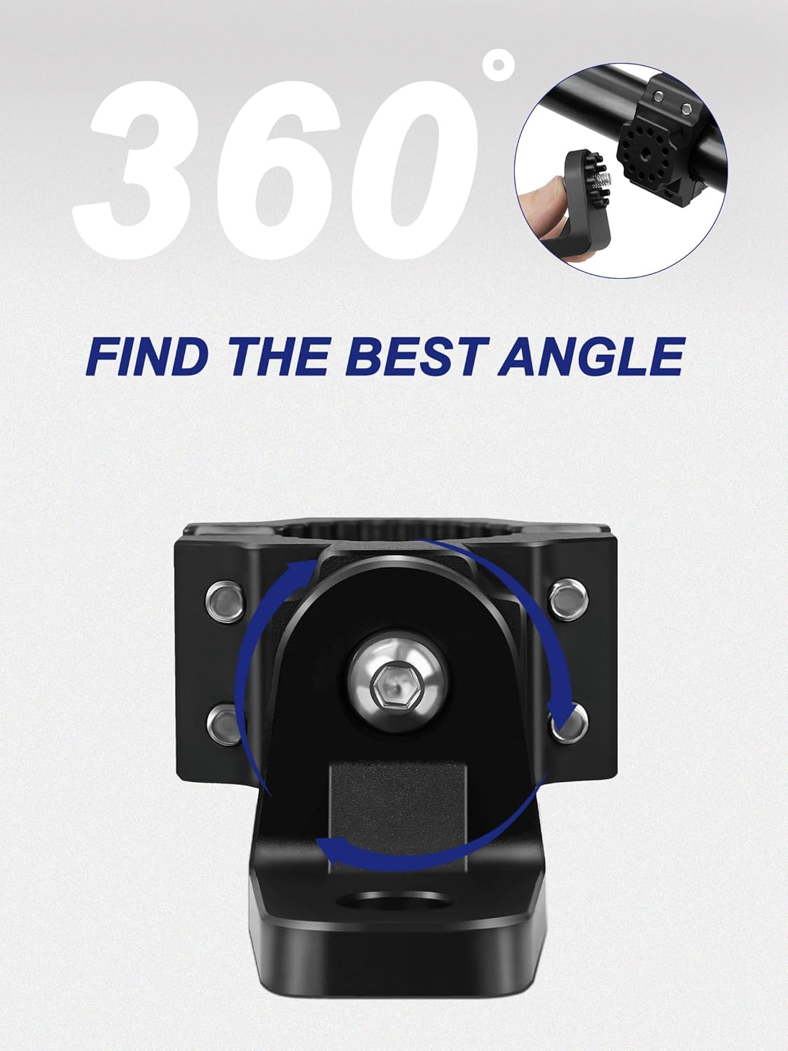 - 6. 【360-Degree Rotation】With 12 pins that rotate 30 degrees each, you can find the perfect angle to install your flag, whip light, chasing light, or light bars. Enjoy full customization and versatility with our mounts.