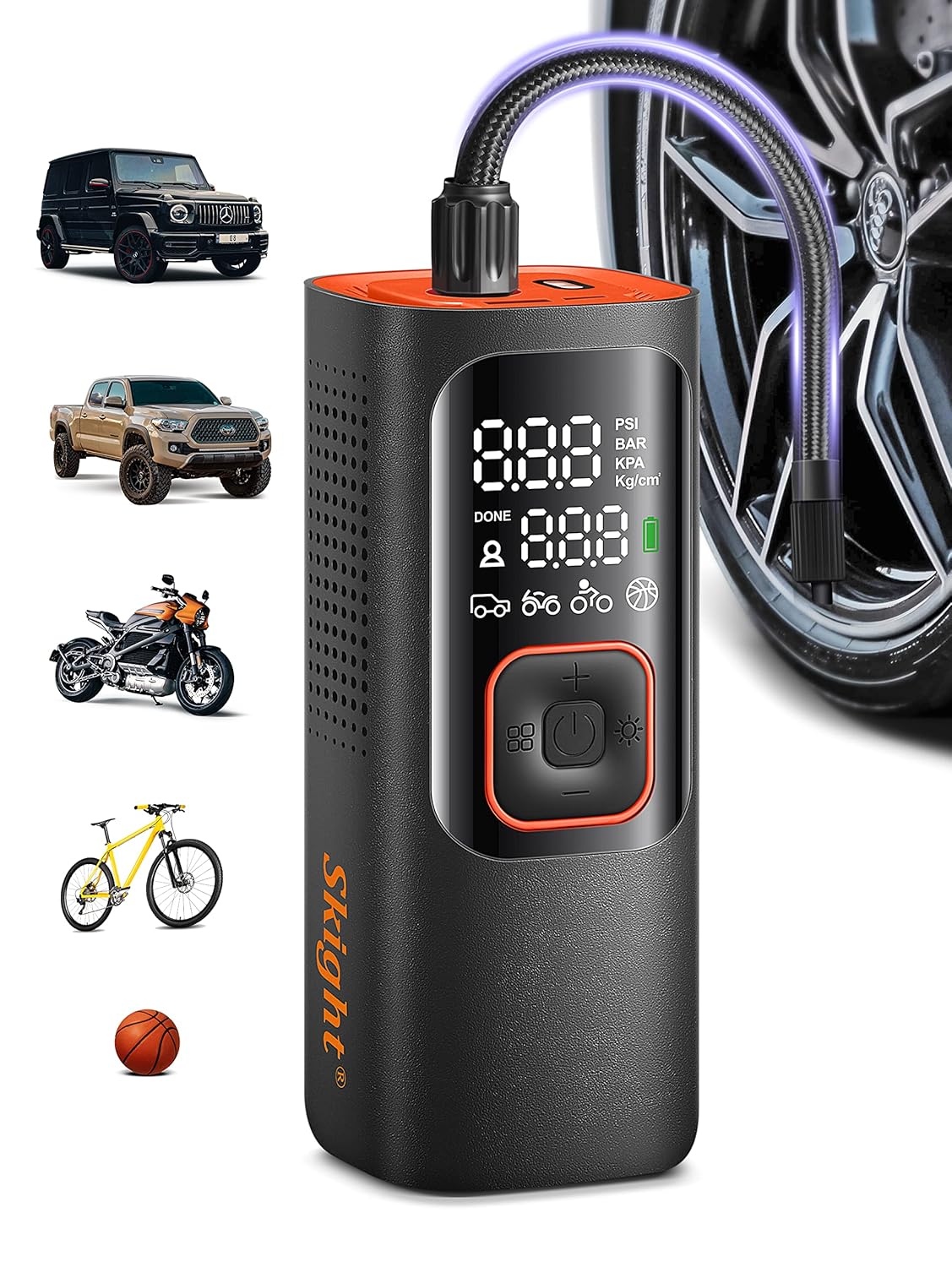 Photos: Tire Inflator Portable Air Compressor – Powerful 160PSI & 2X Faster, Accurate Pressure LCD Display, Cordless Easy Operation – Portable Air Pump for Car, Motorcycle, E-Bike, Ball by Skight