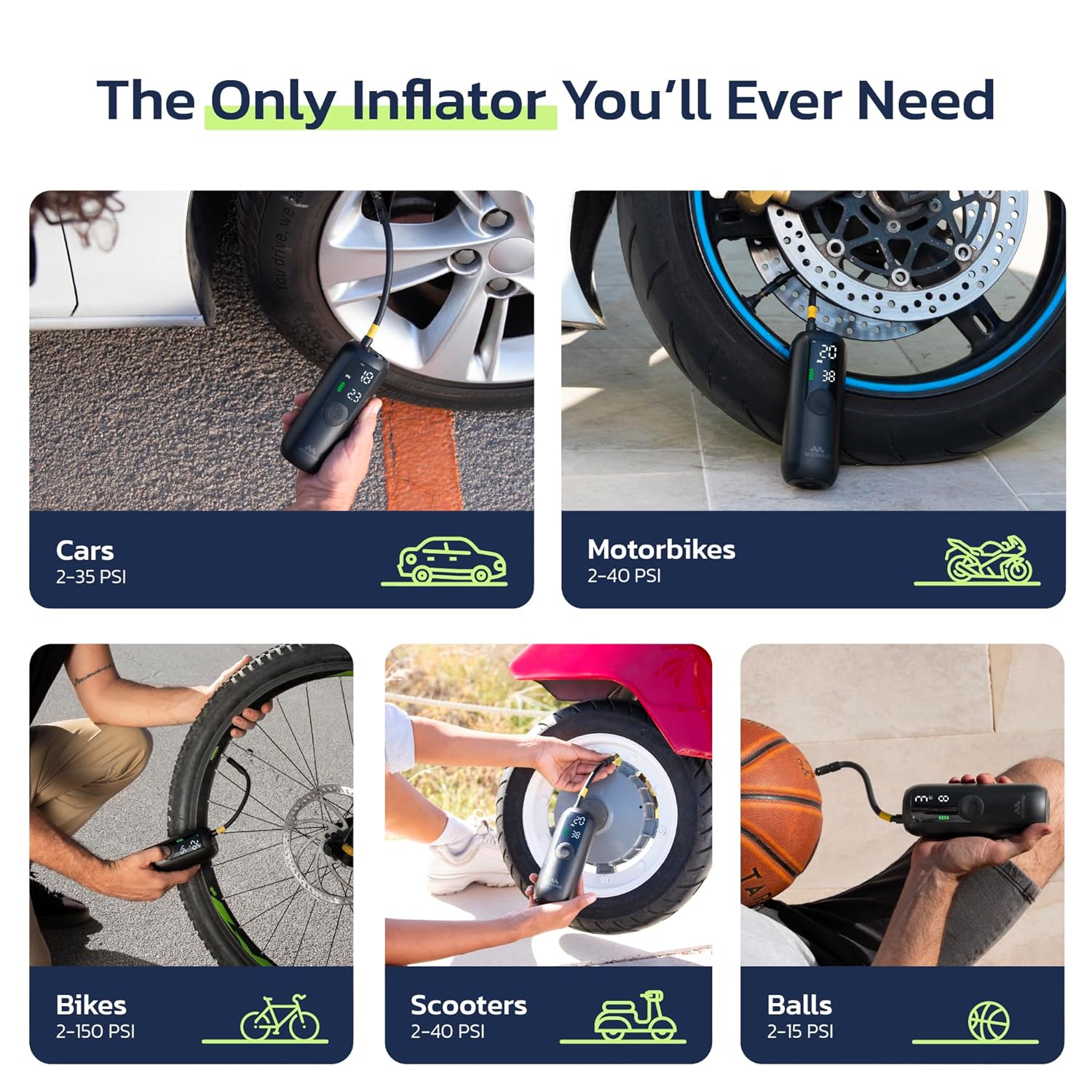 Photos: Woowind Tire Inflator Portable Air Compressor, Electric Bike Tire Pump with Gauge, Air Pump for Car Tires, 150PSI, Mobile Air Compressor for Car, Motorcycle by Woowind