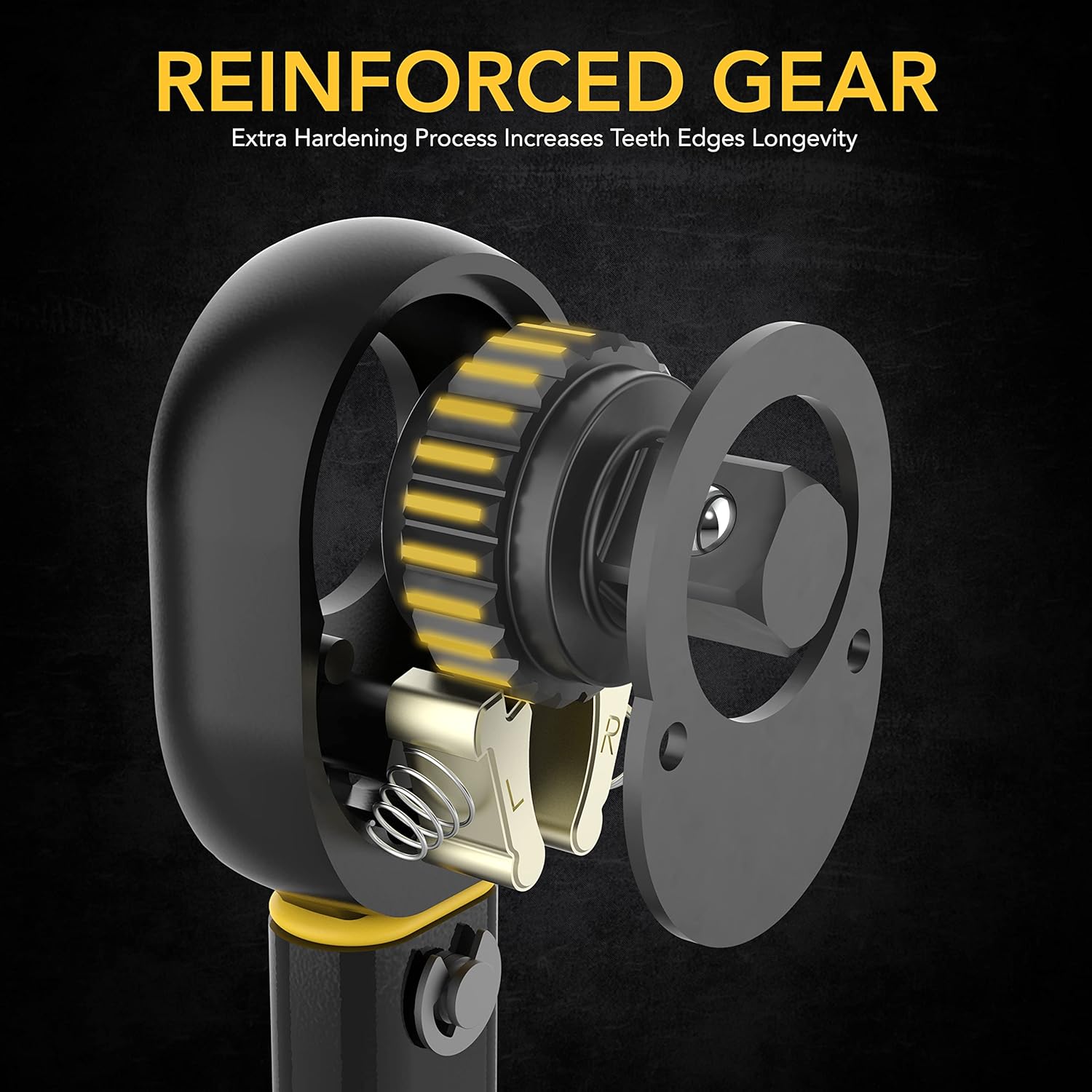 - DURABLE – Built to last, featuring a reinforced ratchet gear head made from hardened, heat-treated Chrome Vanadium alloy steel for maximum strength and durability.