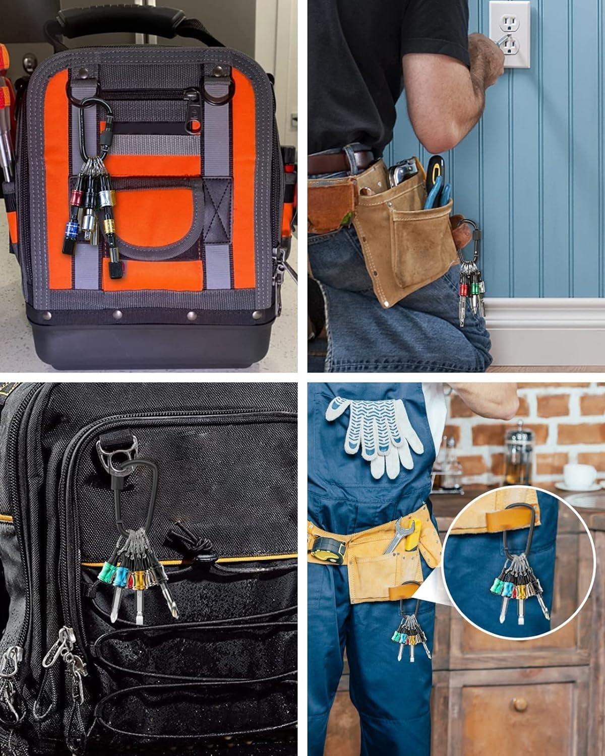 This drill bit carabiner is awesome – I used to just keep a few different bits in my pockets to change them out, but since I keep a bunch of other things in my pockets that I shouldn’t, it was always a few unnecessary seconds of digging to find the right one. This is such a cheap but efficient addition to help keep your organized and efficient. I keep my most used bits on here, but it’s easy to change them out as needed for different jobs. This would make a great gift for your favorite handyman or for yourself!