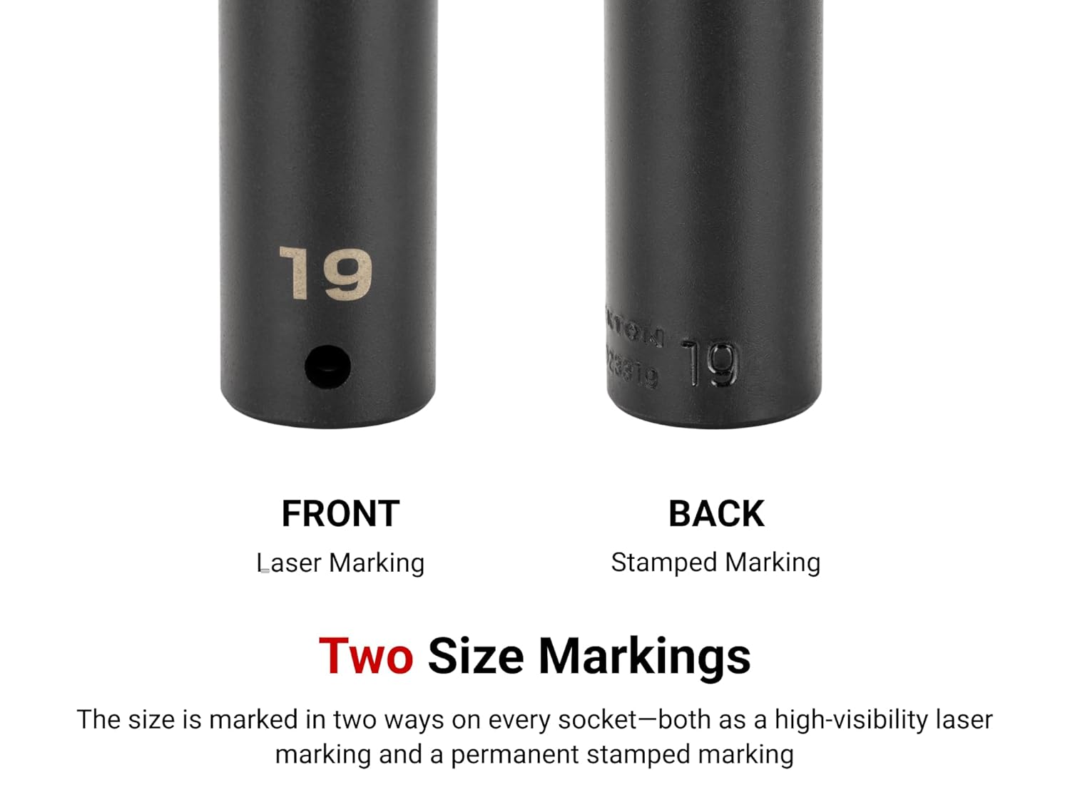 - Two Size Markings โ The size is marked in two ways on every socketโboth as a high-visibility laser marking and a permanent stamped marking