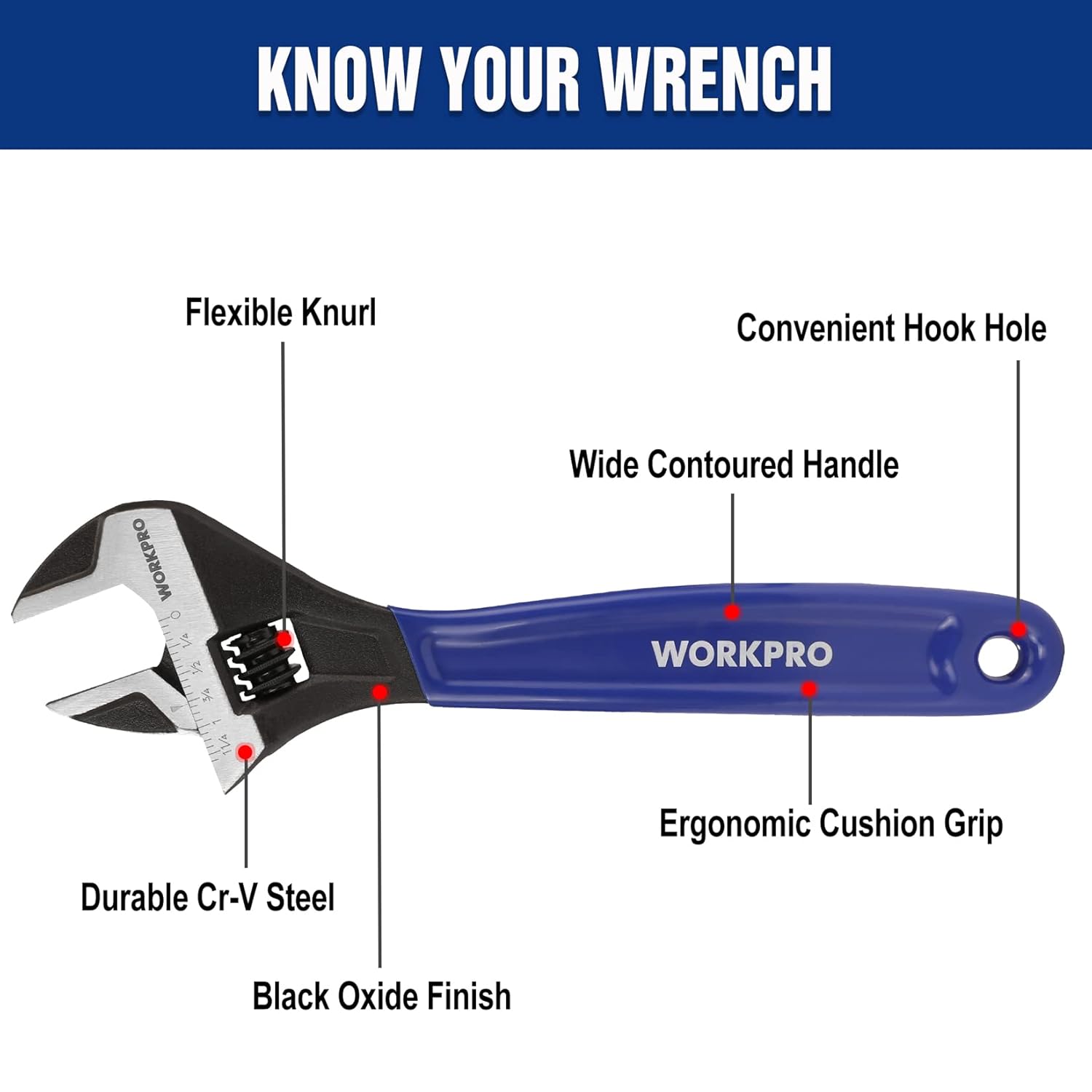 Top Pick โ discover the WORKPRO 2-Piece Adjustable Wrench Set, 6-Inch & 10-Inch Wide Jaw Black Oxide Wrench, Cr-V Steel, Metric & SAE Scales, Max Jaw Opening 15/16″ & 1-5/16″, for Home Repairs,… by WORKPRO, built for performance and designed for life in the United States.