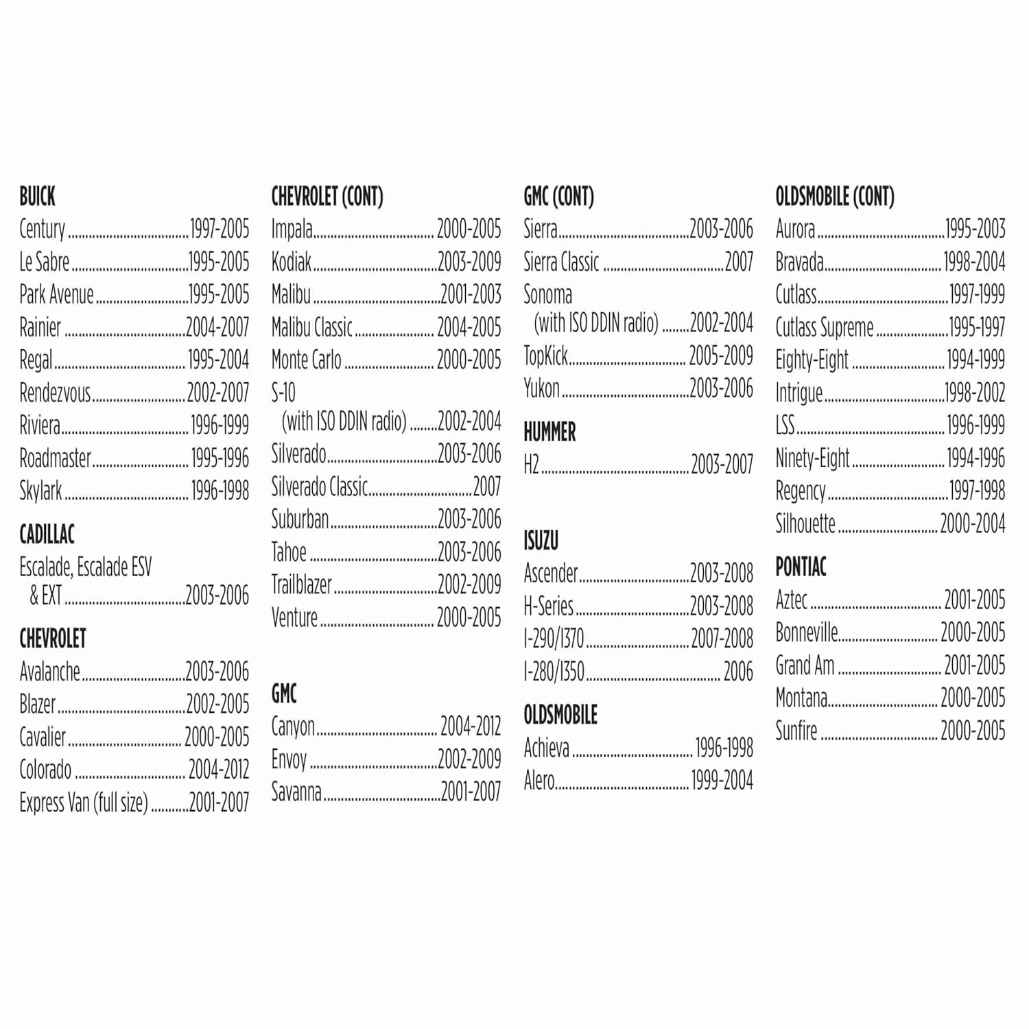 Specification: Metra Electronics 95-2001 Double DIN Installation Dash Kit for Select 1994-2012 GM Vehicles (Packaging May Vary) by Metra