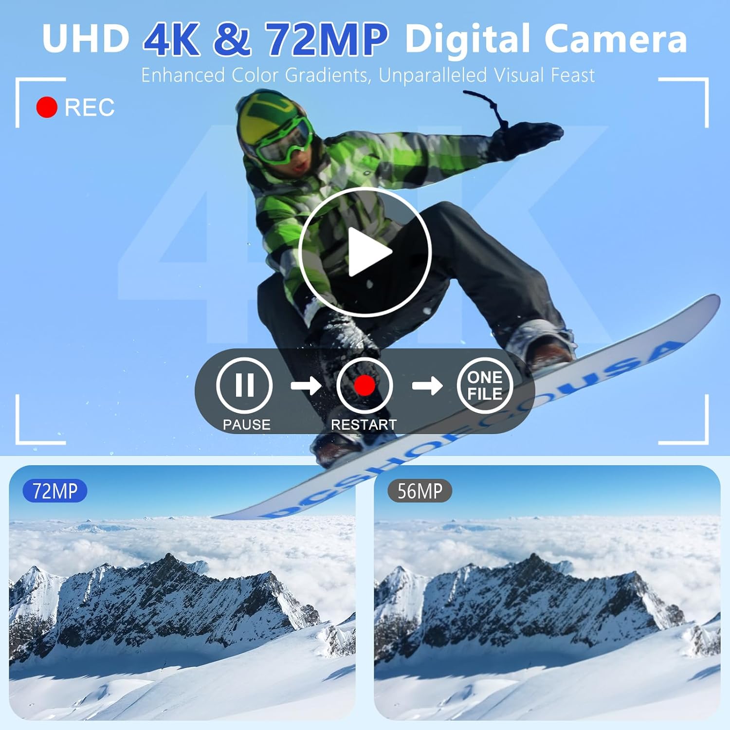- 𝐂𝐥𝐞𝐚𝐫 𝟒𝐊 𝐕𝐢𝐝𝐞𝐨 & 𝟕𝟐𝐌𝐏 𝐏𝐡𝐨𝐭𝐨𝐠𝐫𝐚𝐩𝐡𝐲 : Capture Stunning 4K Videos and 72MP Ultra-high-definition Photos, Advanced CMOS Sensor, Autofocus System Experience Stunning Details and Vibrant Colors in Maximum 4K/24FPS Video Resolution. Ideal Professional Camera for Photography Travel and Creative Projects, Like Architectural Textures and Stage Close-ups.