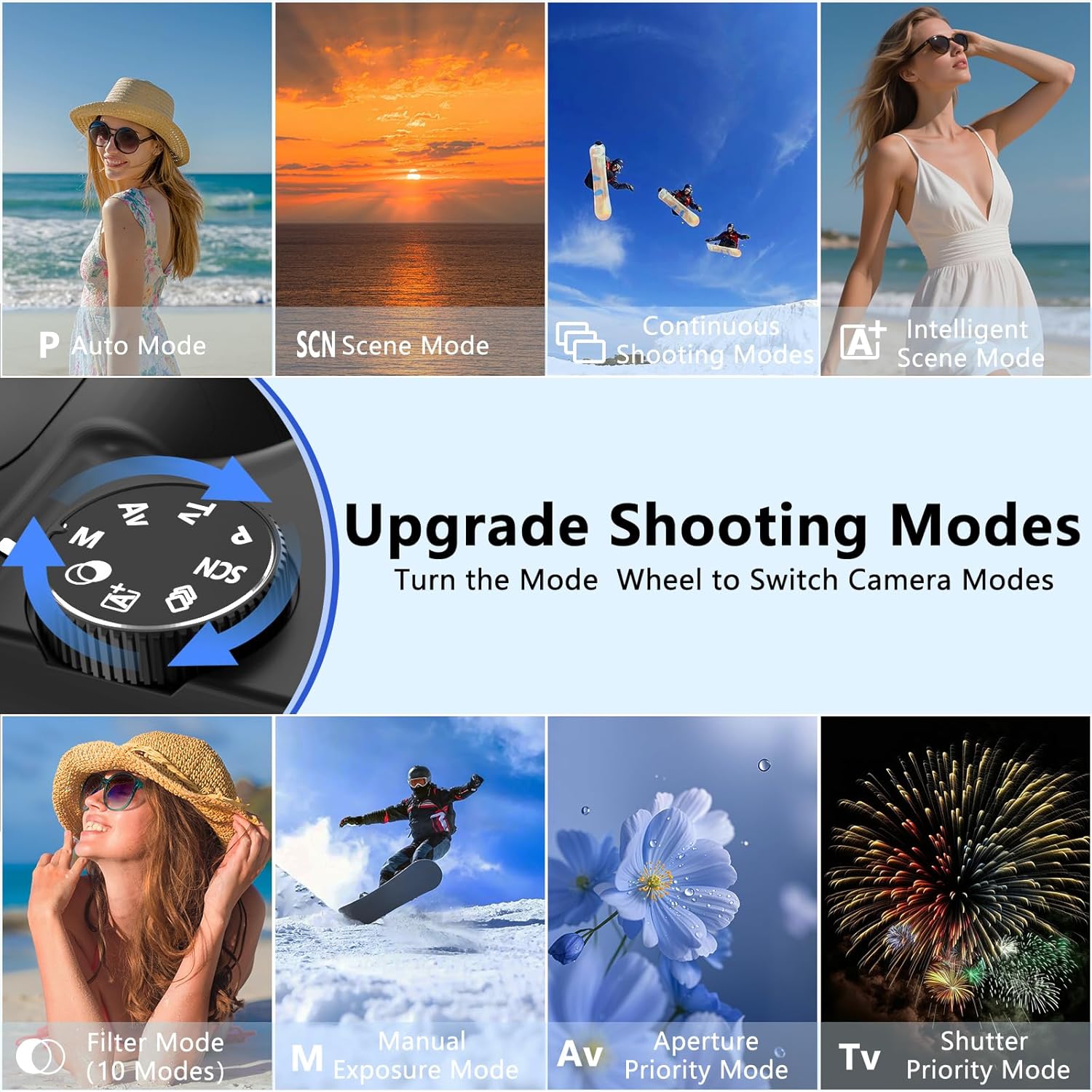 - 𝐒𝐦𝐚𝐫𝐭 𝐏𝐡𝐨𝐭𝐨𝐠𝐫𝐚𝐩𝐡𝐲 𝐂𝐚𝐦𝐞𝐫𝐚𝐬: Experience Point-and-Shoot Simplicity With 10+ filters & Timelapse Mode. Wireless app Control Enables TikTok/Instagram Sharing. Intelligent Scene Recognition Automatically Optimizes Night/Portrait/Sports Shots. Additional Features Like a Fill Light, Anti-shake, 3 Continuous Shooting, Smile & Face Detection, Beauty Face, Self-timer, Various Filters Encourage you to Stretch Creative Boundaries, ideal for Group Photos, Tripod use to Avoid Shake