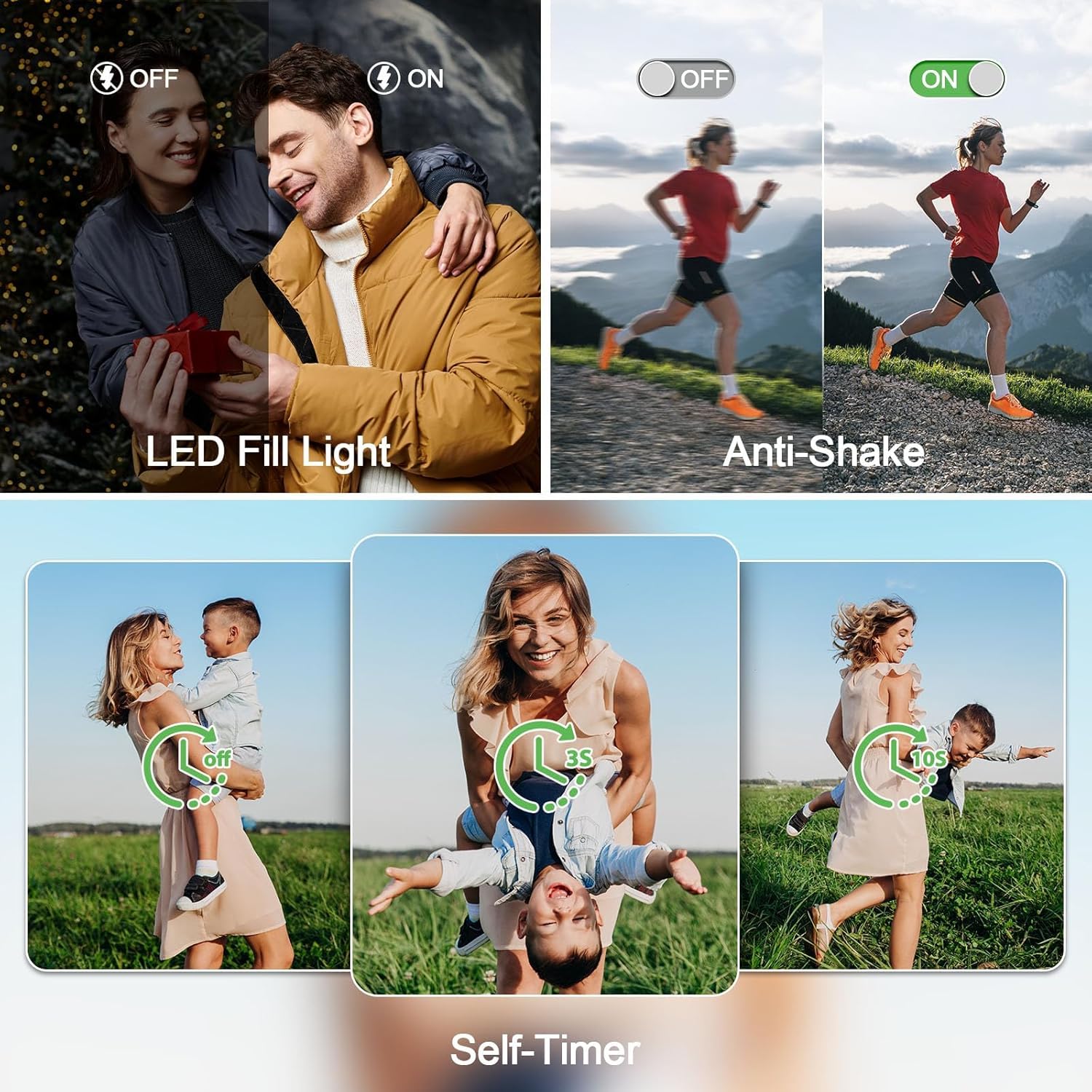 - 72MP Autofocus Digital Camera for Photography: The vlogging camera with flip screen supports up to 72 million pixels and has high color reproduction. In addition, the compact camera digital will automatically focus on this point, and a green box will appear to indicate successful focusing. Suitable for recording memorable scenes such as family gatherings, weddings, birthday parties, etc