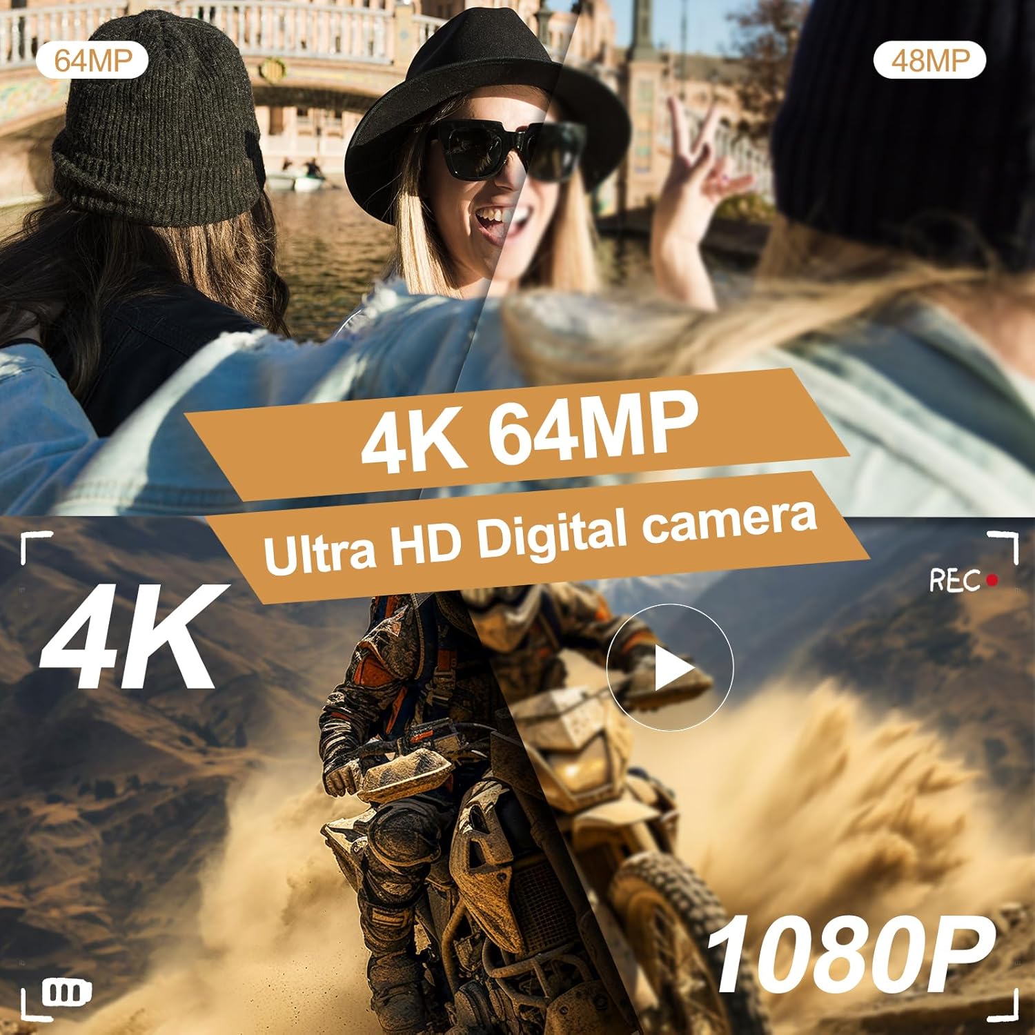 - 【4K Digital Camera & 64MP & Debounce】Featuring a premium CMOS sensor and anti-shake technology,this digital camera delivers crisp resolution sensor and supports 4K ultra-high-definition video recording, perfectly capturing both dynamic videos and static images. Whether it’s a birthday party, family trip, or school event, this small camera makes every moment unforgettable.
