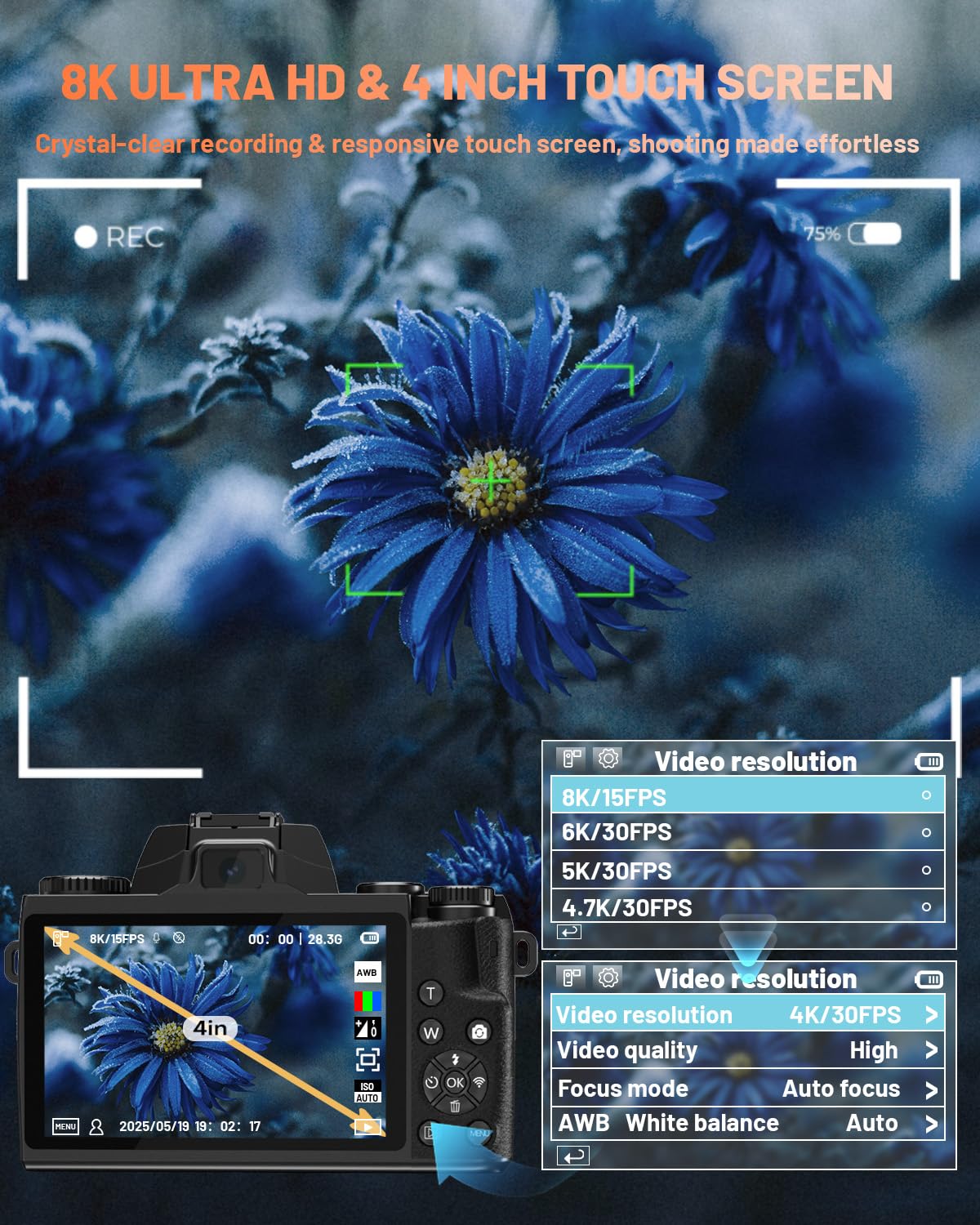 - 【8K & 64MP Cameras for Photography】This digital camera offers 8K video resolution and 64 megapixels, capturing stunning high-resolution photos and videos with fine detail. It’s ideal for both high-quality photo shoots and video blogging