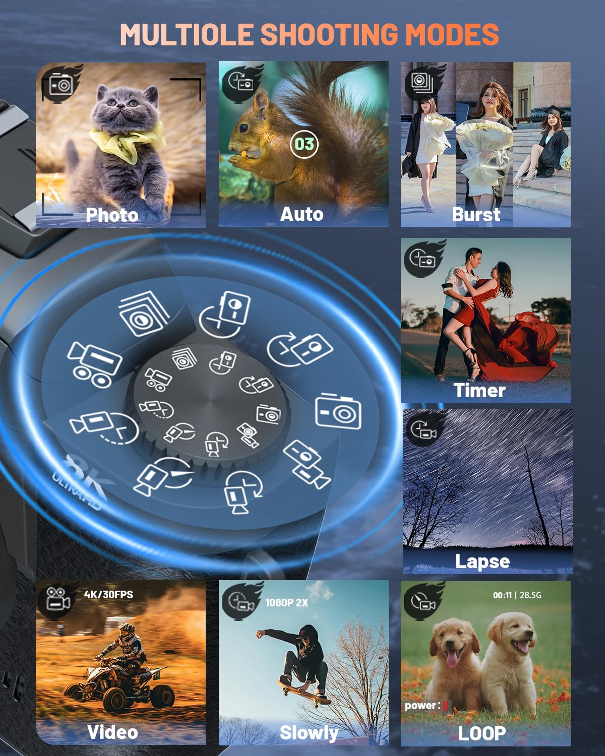 Photos: 8K Digital Camera for Photography, Vlogging Camera for YouTube with Autofocus, 4 Inch Touchscreen 16X Digital Zoom Video Camera with 3000mAh Battery, Dual-Lens, Lens Hood, 32GB… by UIKICON
