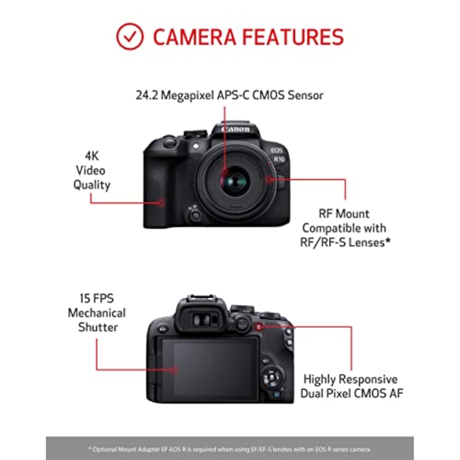 Top Pick — discover the Canon EOS R10 Mirrorless Camera with RF-S 18-45mm Lens Kit by Canon, built for performance and designed for life in the United States.