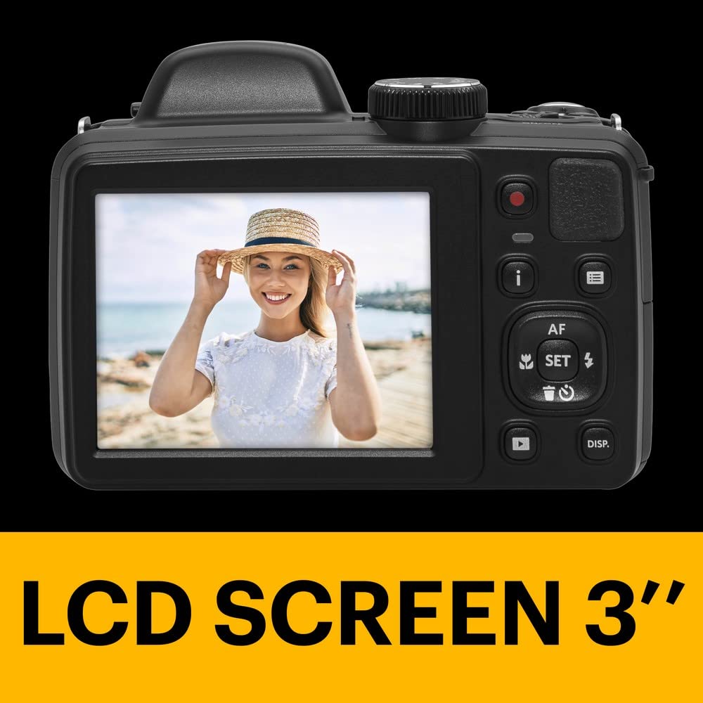 Specification: KODAK PIXPRO AZ425-BK 20MP Digital Camera 42X Optical Zoom 24mm Wide Angle Lens 1080P Full HD Video Optical Image Stabilization Li-Ion Battery 3″ LCD Vlogging Camera (Black) by KODAK