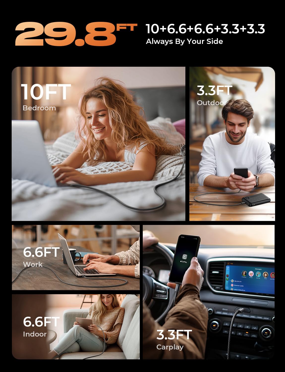 In everyday use, these cables have proven to be exceptionally reliable. I use them for charging my phone, tablet, and other USB-C devices. The variety of lengths is incredibly convenient for different scenarios. The 10ft cable is especially useful when I need to charge my device while lying in bed or sitting on the couch, far from an outlet.
