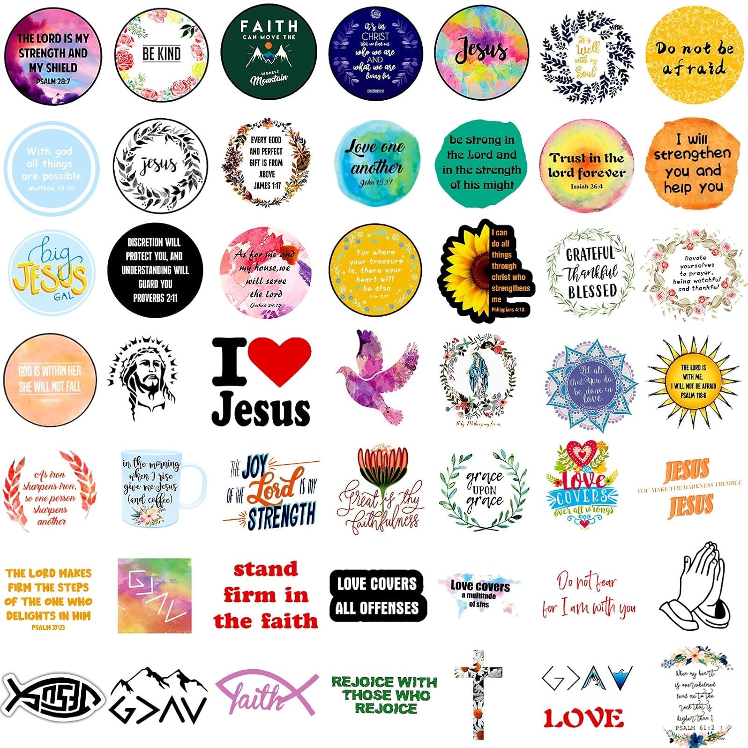 - USAGE: These bible verse motivational stickers are great for your laptop, computer, keyboard, kettle, water bottle, scrapbook, notebook, luggage, skateboard, snowboard, bicycle, car, guitar , And more. Great religious jesus faith prayer motivational stickers for adults, teens, kids,women and men.