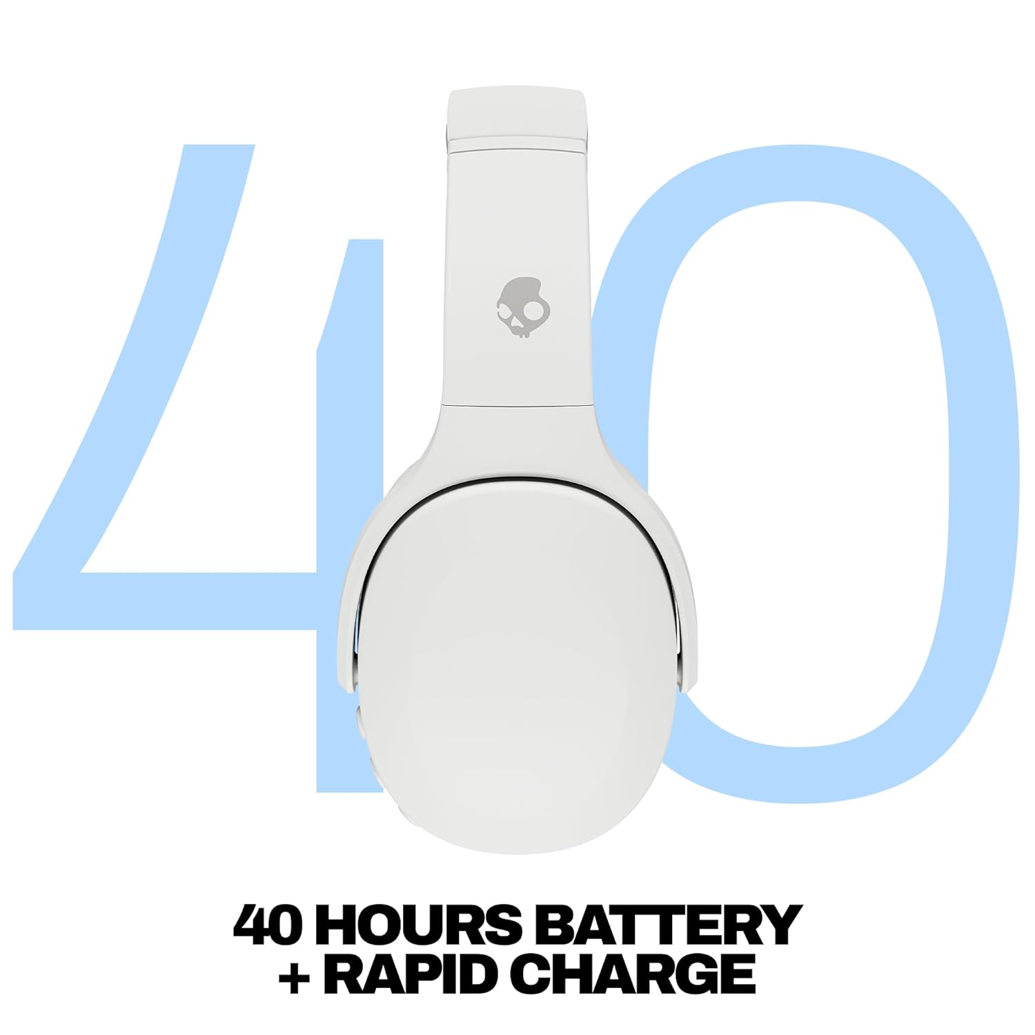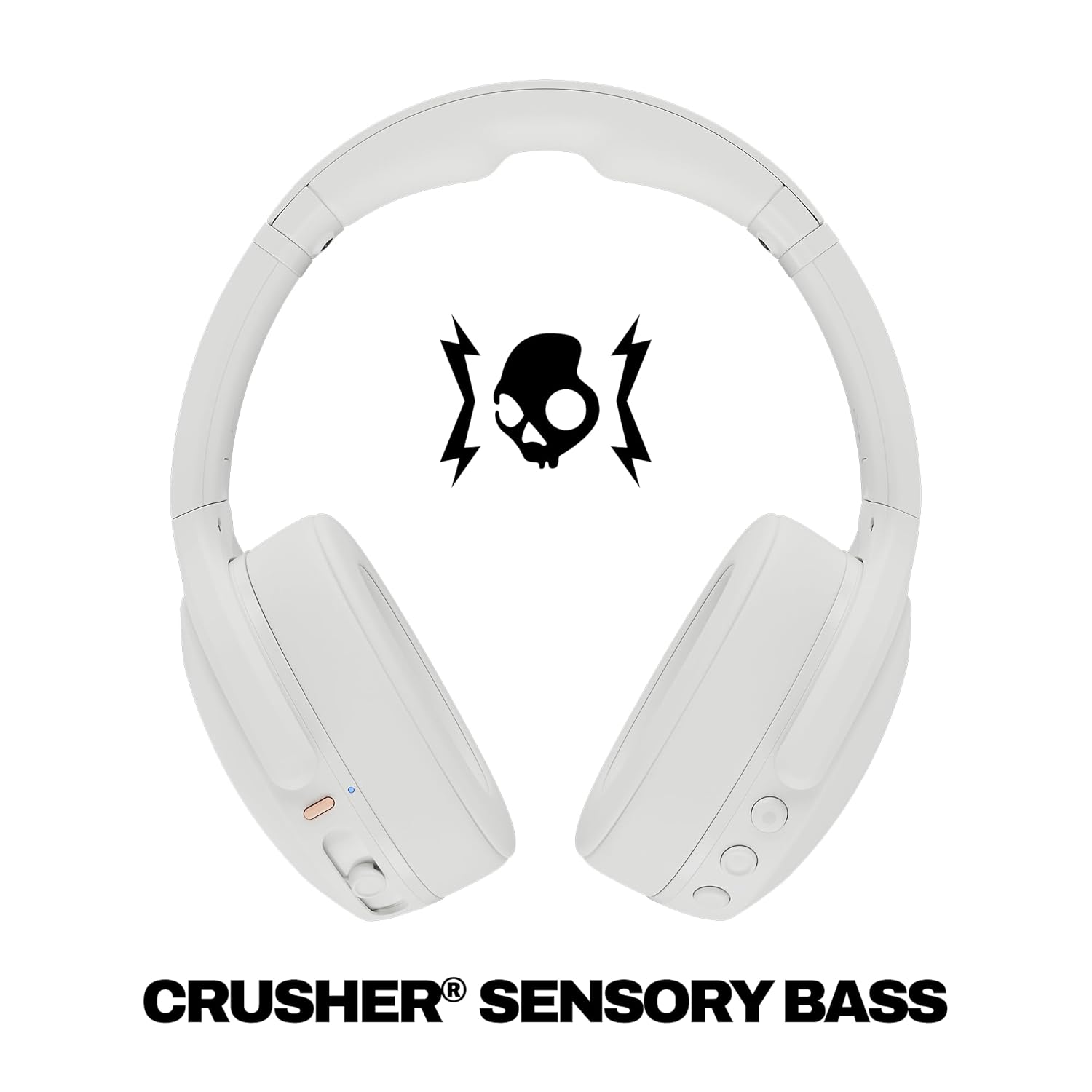 Skullcandy Crusher Evo Wireless Bluetooth Headphones with Multi-Sensory Bass, Noise Isolating Over-Ear Fit, Up to 40 Hours Battery, Microphone for iPhone Android – Bone by Skullcandy