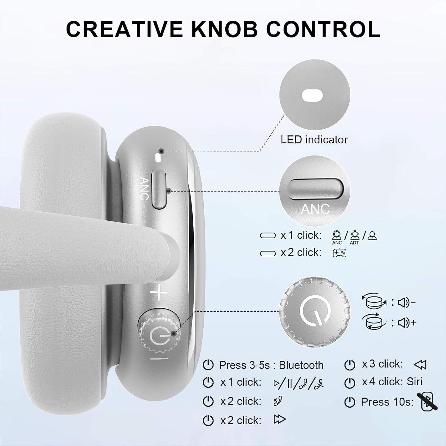 - Creative Volume Knob Control: The controls on the NC95 headphones appear minimalist. One control with a rotating and pressable dial. The volume is easy to adjust by rotating the dial knob, while pressing the knob lets you play/pause music or answer a phone call, and more. The other control is a single button that toggles between transparency mode and ANC on/off. Note: Knob function and ANC mode are only for wireless connection