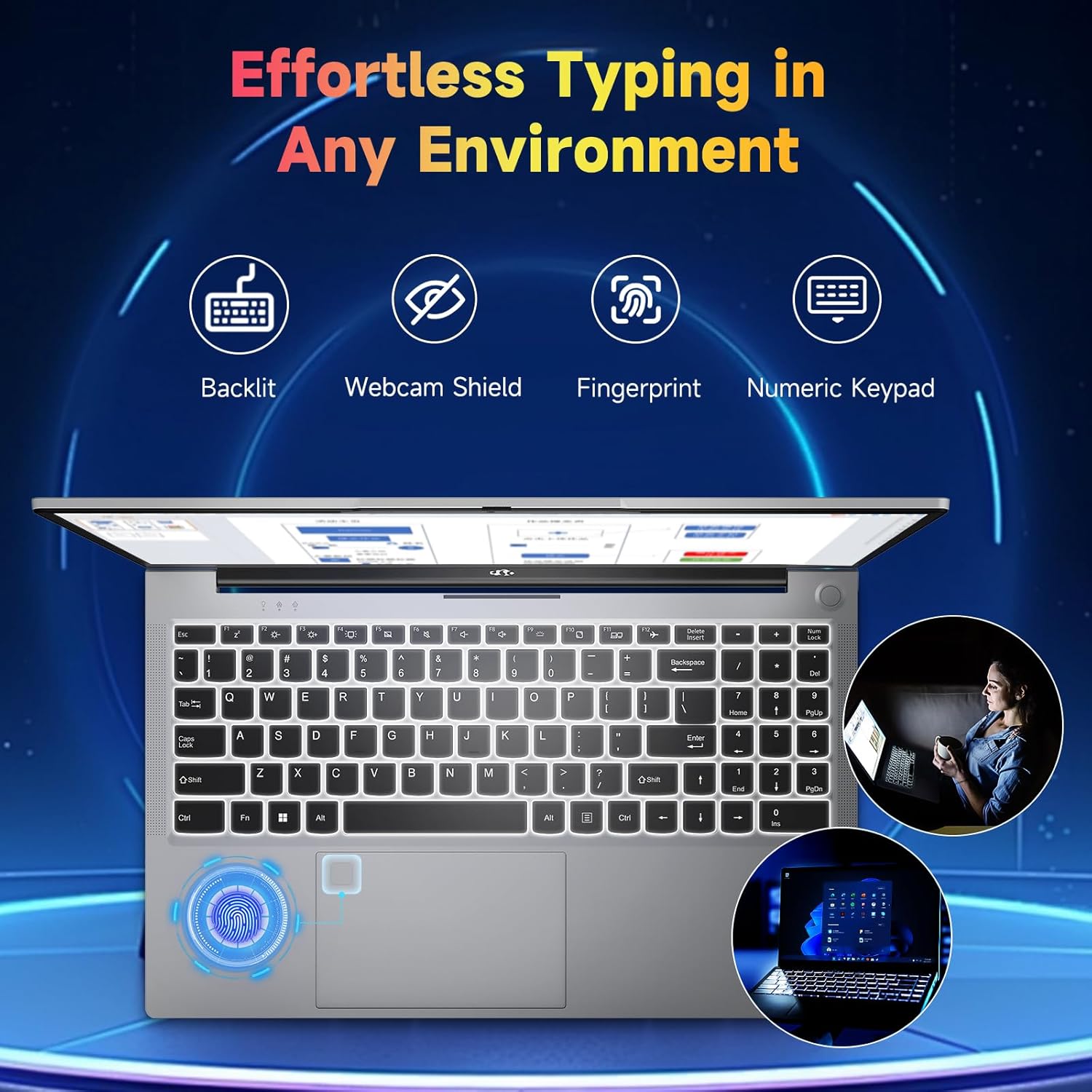 Photos: 15.6-FHD-Laptop Student-Laptop, 16GB RAM 256GB SSD, Intel Pentium Quad-Core N100 Processor (Up to 3.4GHz) Backlit Keyboard Fingerprint WiFi 6 BT5.2 Business-Laptop, 2 Years… by NIMO