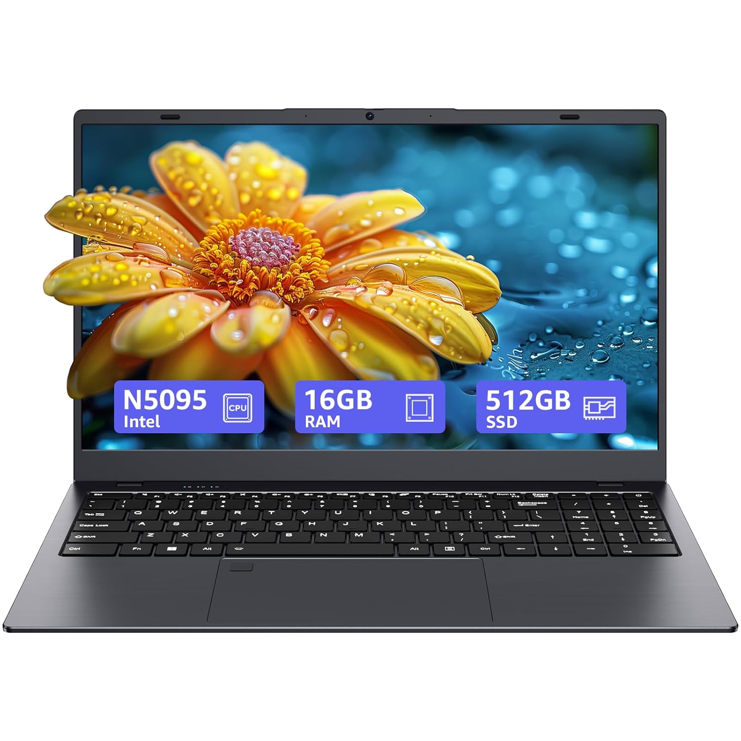 About 15.6-inch, 16GB RAM, 512GB SSD, FHD IPS Display Laptop Computer, N5095 Quad Core, 2.4/5G WiFi, BT4.2 Backlit and Fingerprint, Lightweight and Portable