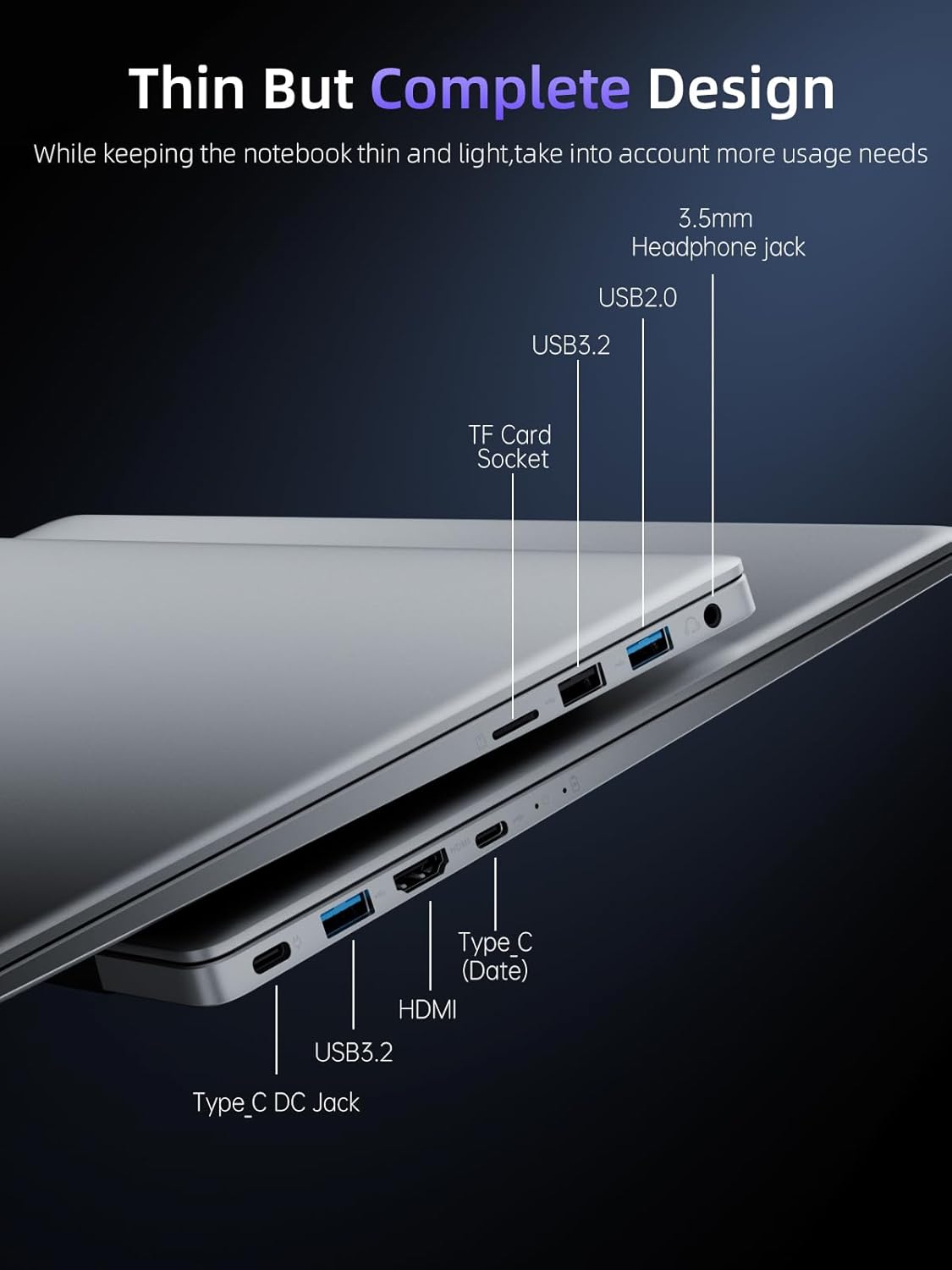 - 【SEAMLESS CONNECTIVITY】The laptop computer is equipped with a versatile array of ports, including HDMI Type A x1, USB 2.0 x1, USB 3.2 x2, Type-C (Data) x1, 3.5mm Headphone jack x1, 128GB TF Card Socket x1, and Type-C DC Jack x1. Enjoy lightning-fast 802.11ac WiFi, delivering speeds up to three times faster than 802.11n for swift downloads and streaming. Additionally, it boasts Bluetooth 5.0 for effortless and stable connections with nearby devices.