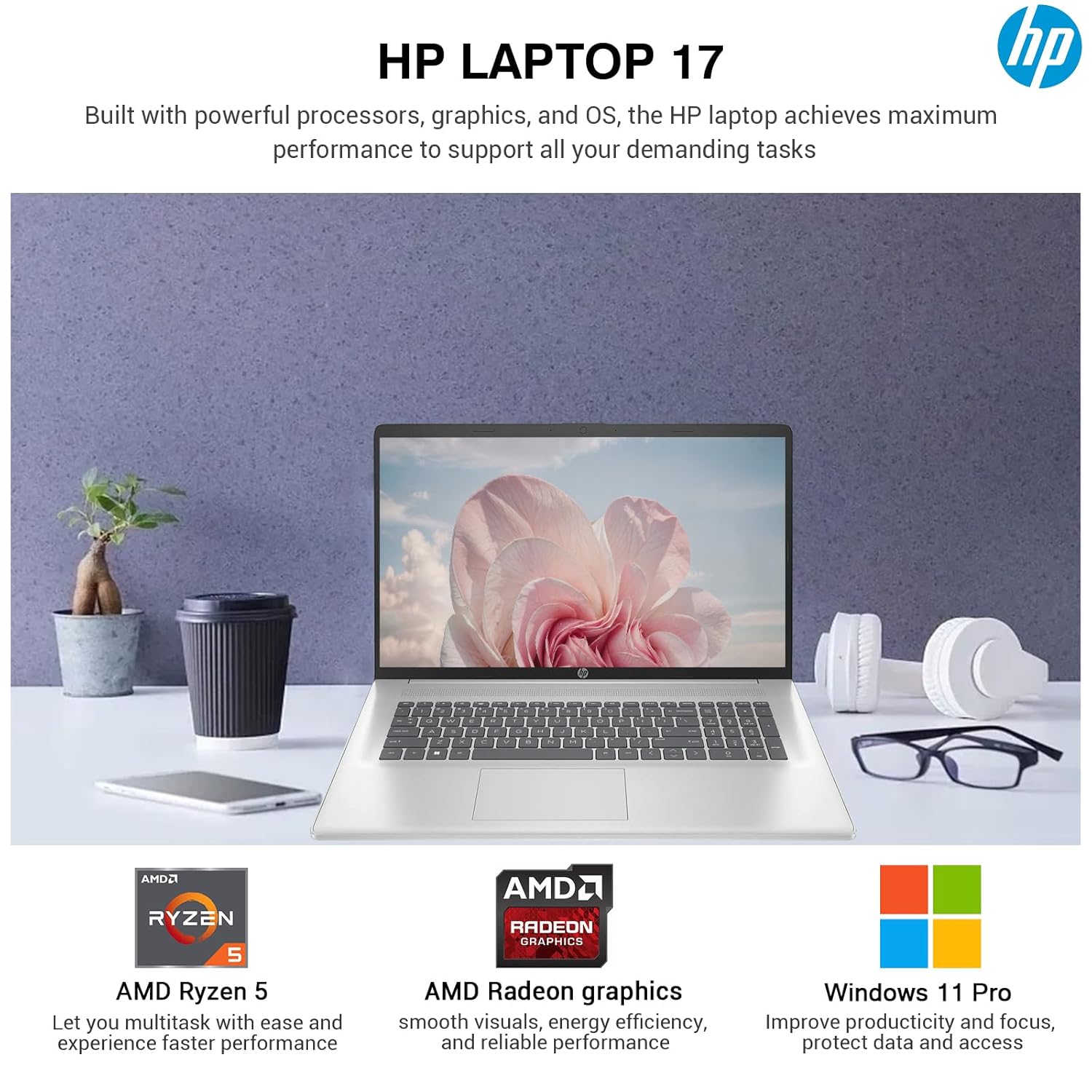 - ULTIMATE POWER – The HP 17 laptop amd is ready to go with the latest AMD Ryzen 5 processor (6 cores, 12 threads) that power through even the most demanding tasks such as gaming, video editing, and coding with ease – best for business, college students and creators. Indulge in exceptionally smooth details and immersive visuals with AMD Radeon Graphics. HP Ryzen 5 laptop 17.3 inch is made for practical multitasking and efficiency for work, school, or play within budget