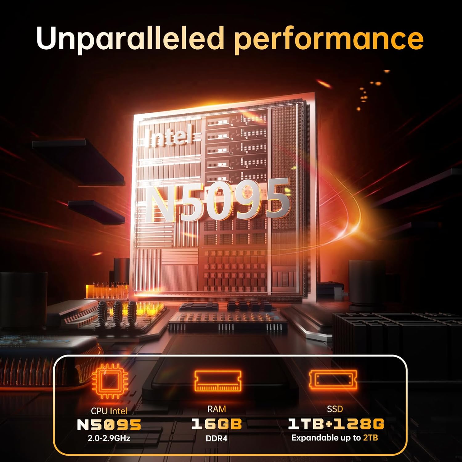 - Intel N5095 Turbo Performance & Expandable Storage: This laptop comes with the latest Jasper Lake N5095 Processor (4 cores, 4 threads),16GB DDR4,128GB Emmc 1TB SSD storage for powerful performance for multitasking, gaming, editing, and office work. Ideal for light office workers, students, and families