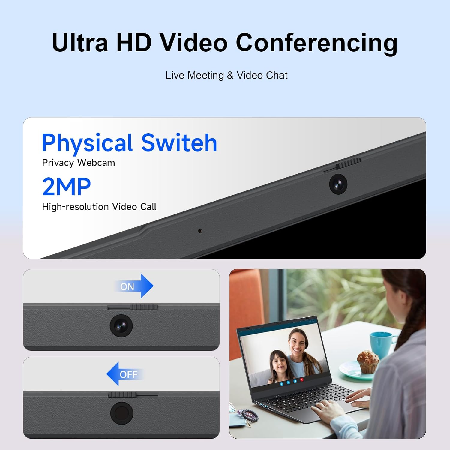 - Versatile Connectivity: This laptop Comeputer features: RJ45, HDMI 1.4, USB 3.2 Gen 1 (5Gbps) x 2, USB 2.0 x 1, DC Charging Jack, TF card slot for instant storage expansion, 3.5mm Audio jack. Kensington Lock Slot and Camera Privacy switch provide enhanced security and privacy protection for everyday use.
