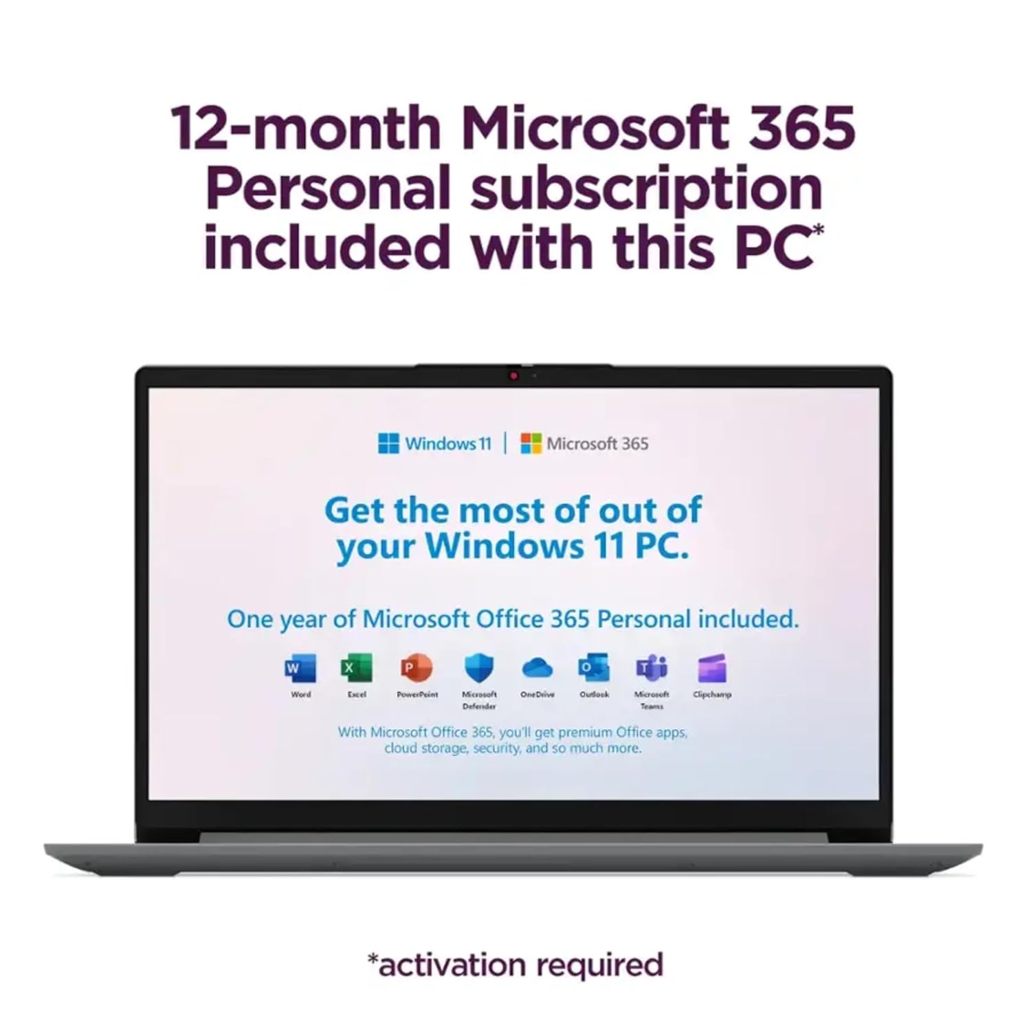 About Lenovo IdeaPad 1i Laptop with Microsoft 365 Home and Business • 12GB RAM • 1TB Cloud Storage and 256GB SSD • Intel Core • 15 Anti-Glare Screen • WiFi-6 • 11HR Battery • Windows…
