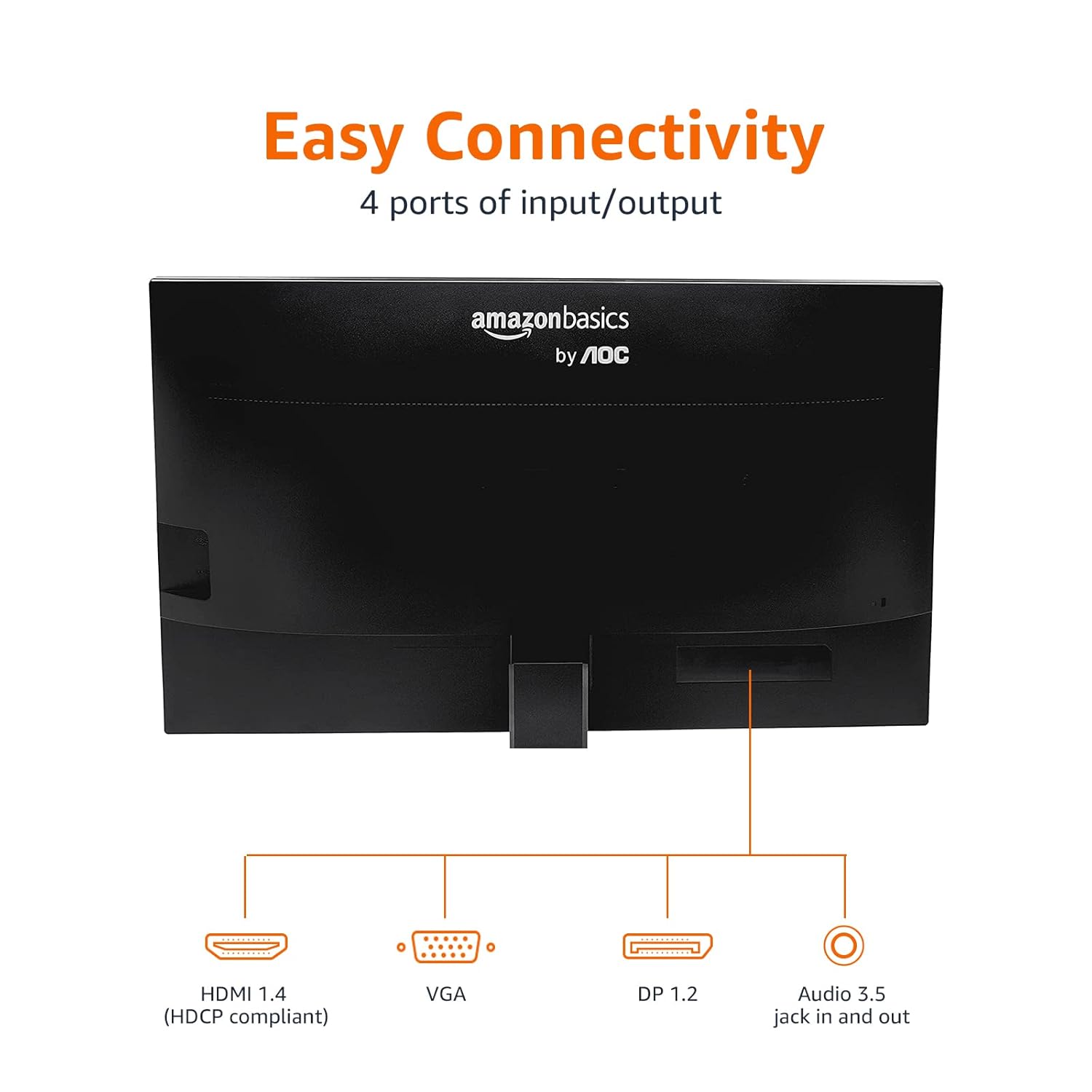Specification: Amazon Basics 24-inch IPS Monitor 75 Hz Powered with AOC Technology FHD 1080P HDMI, Display Port and VGA Input VESA Compatible Built-in Speakers for Office and Home, Black by Amazon Basics