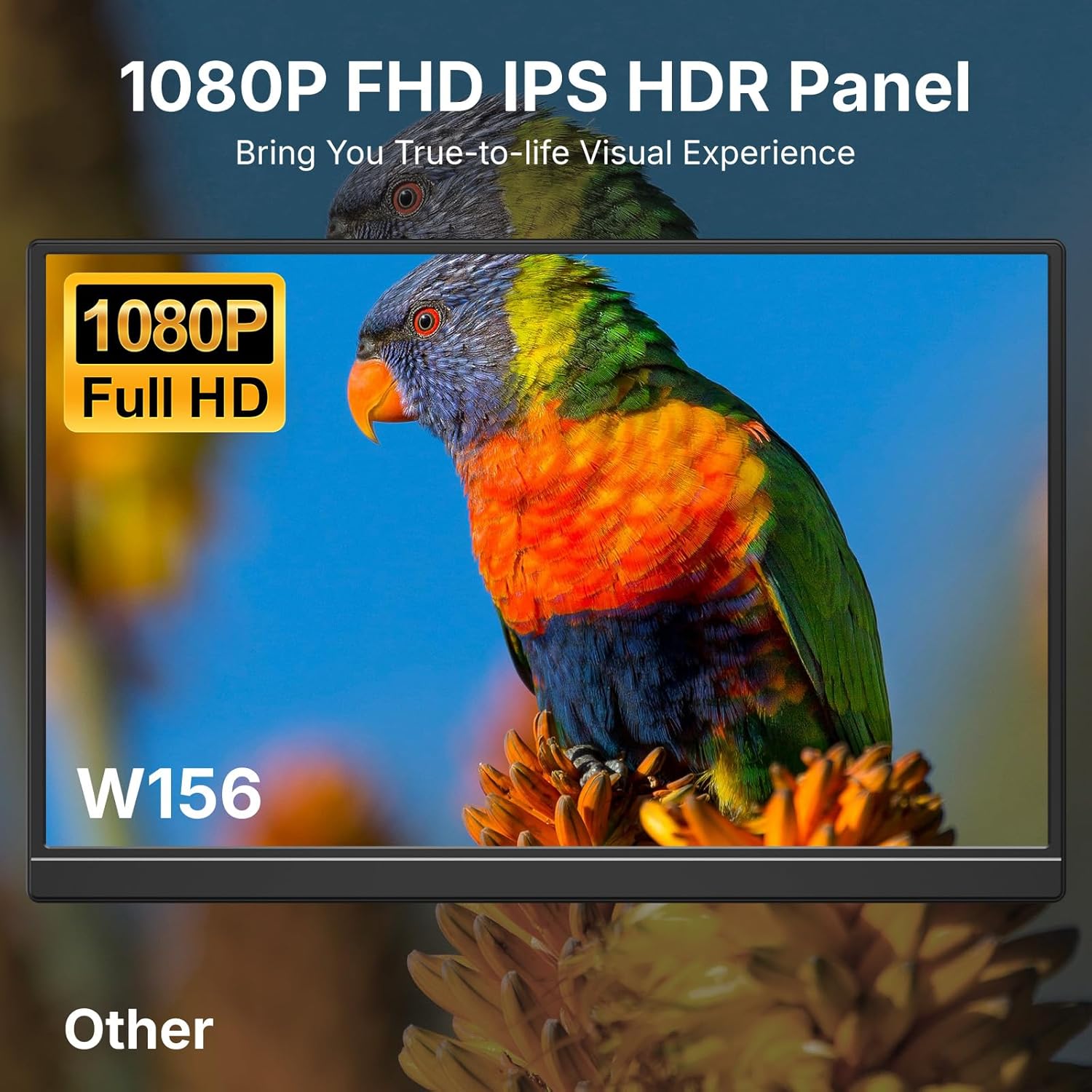 - 15.6″ FHD Portable Monitor – Featuring a 1920*1080P resolution, 178°FULL viewing angle, HDR, and Low Blue Light Super Clear IPS A-grade screen, this WGK portable screen for laptop enhanced visual experience, reduces eye strain and fatigue.
