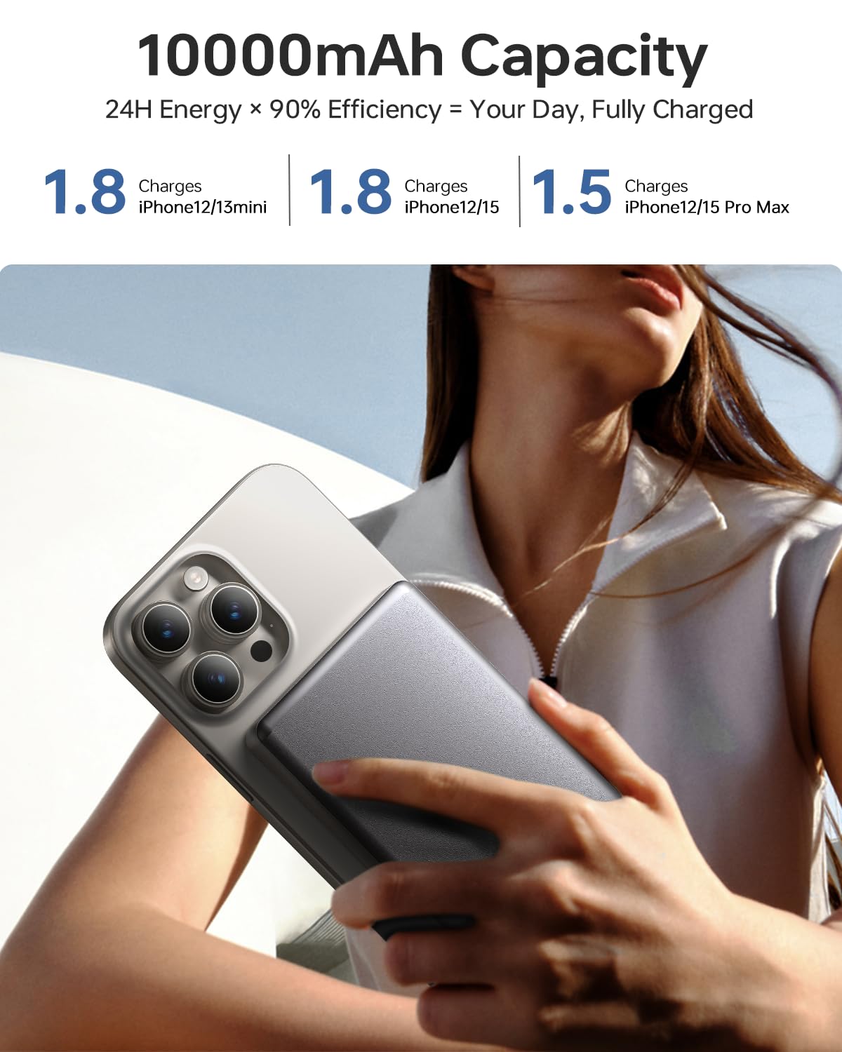 Photos: 10,000mAh MagSafe Power Bank Ultra Slim, Magnetic Wireless Charger with USB-C Cable, Fast Charging Portable Battery for iPhone 17/16/15/14/13/12 Series, All-Metal Design by ULiXWH
