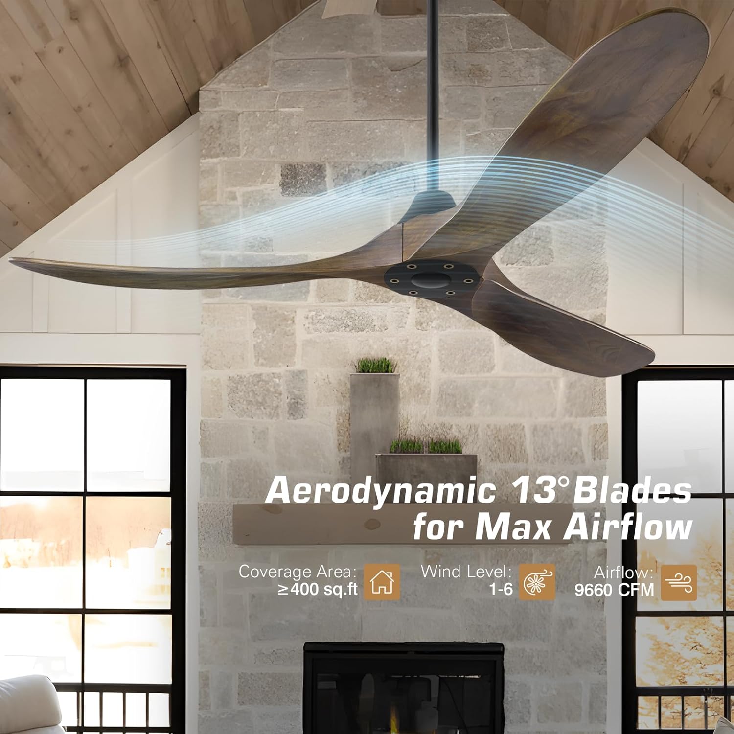 - 🌿Modern Rustic Appeal: Crafted from high-quality solid wood, this 3 blade wooden ceiling fan brings a natural and sophisticated touch to any room. Each blade is finely polished, showcasing clear textures that create an elegant yet understated look. This airplane Propeller ceiling fan with a dynamic airfoil profile and 16° pitch delivers maximum airflow and stability Perfect for both modern and rustic home settings complements your decor