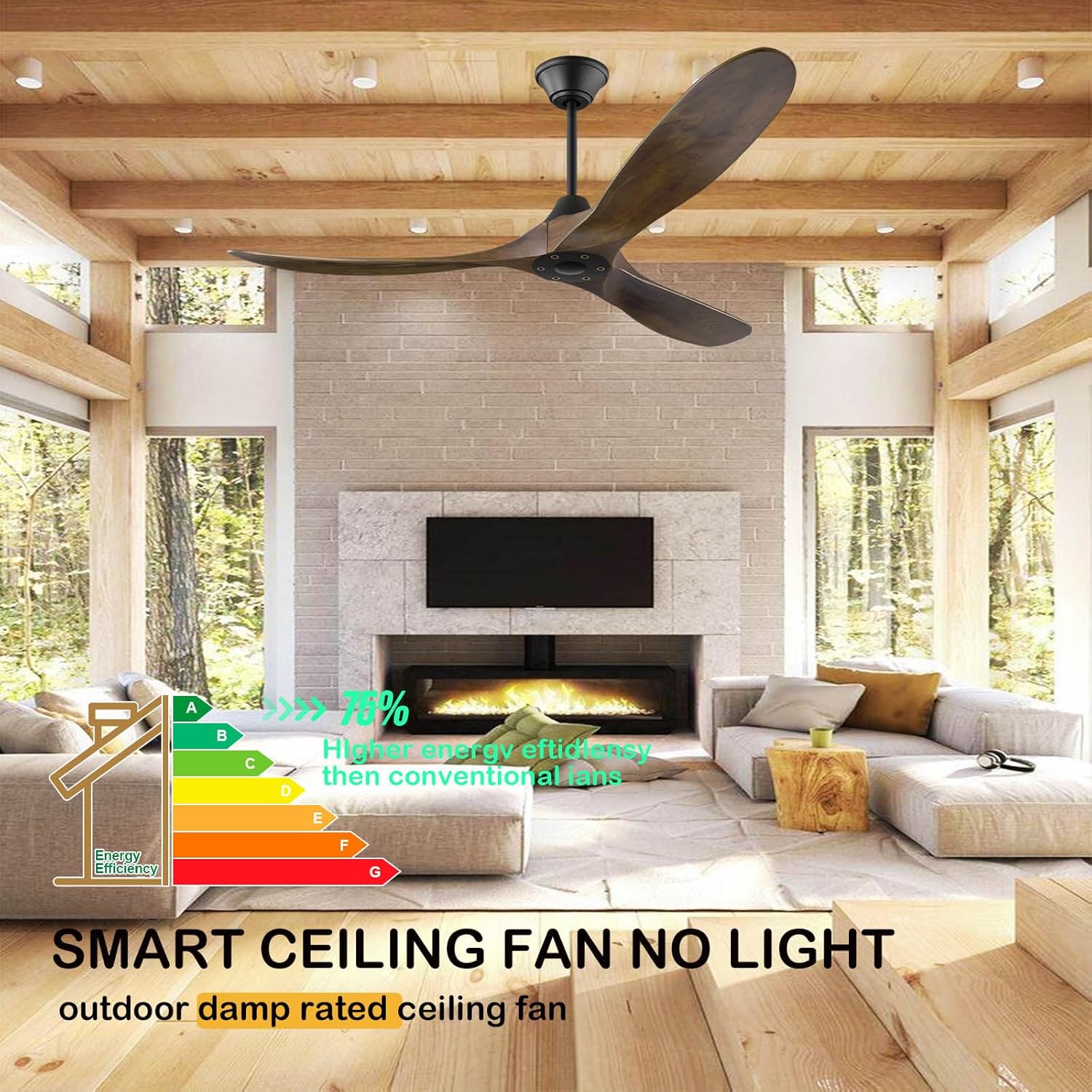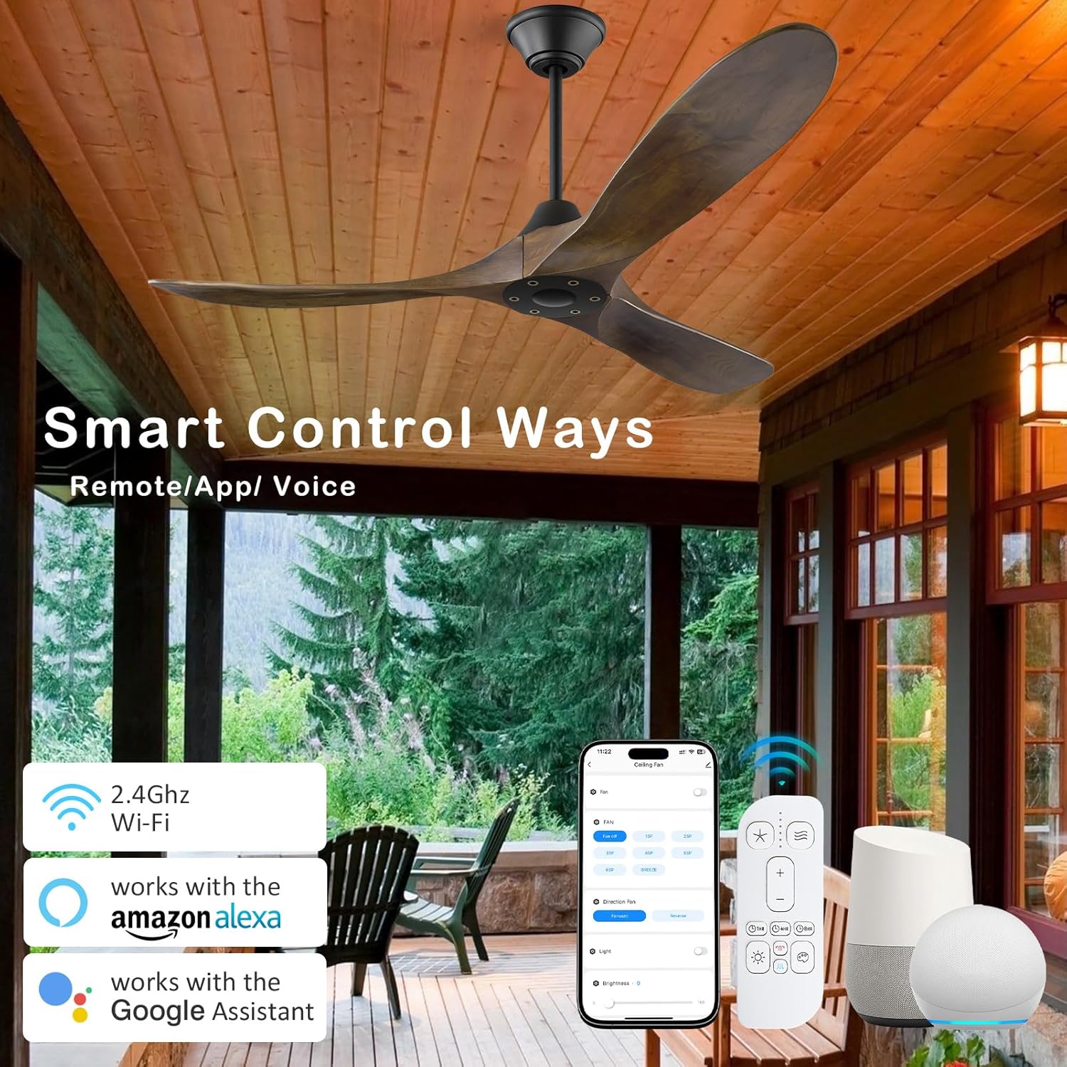 Photos: 52 inch Smart Ceiling Fan without Lights, Outdoor Ceiling Fans for patios, Work with Alexa/Google/App, 3 Blade solid Wood Propeller DC Ceiling Fan no lights with Remote for… by XCWIIE