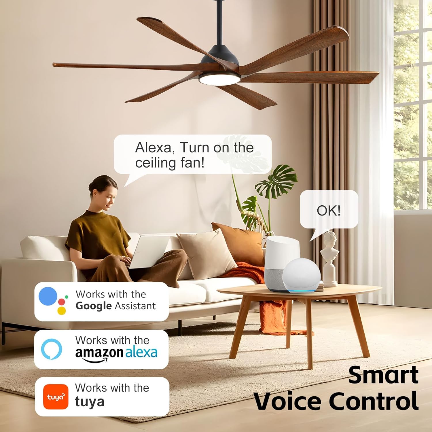 - ใUpgrade Your Smart Home with EaseใShreeFindee 60 inch smart ceiling fan enhances your living space with modern convenience. Control the Rustic Walnut fan via the included remote, Tuya Smart App, or voice commands through Alexa and Google Assistant. Simply say, โAlexa, turn on the fan to max speed,โ and enjoy immediate cooling. Ensure your 2.4GHz Wi-Fi is active and download the Tuya App for reliable connectivity. Perfect for both indoor and outdoor use, this fan is your smart home solution