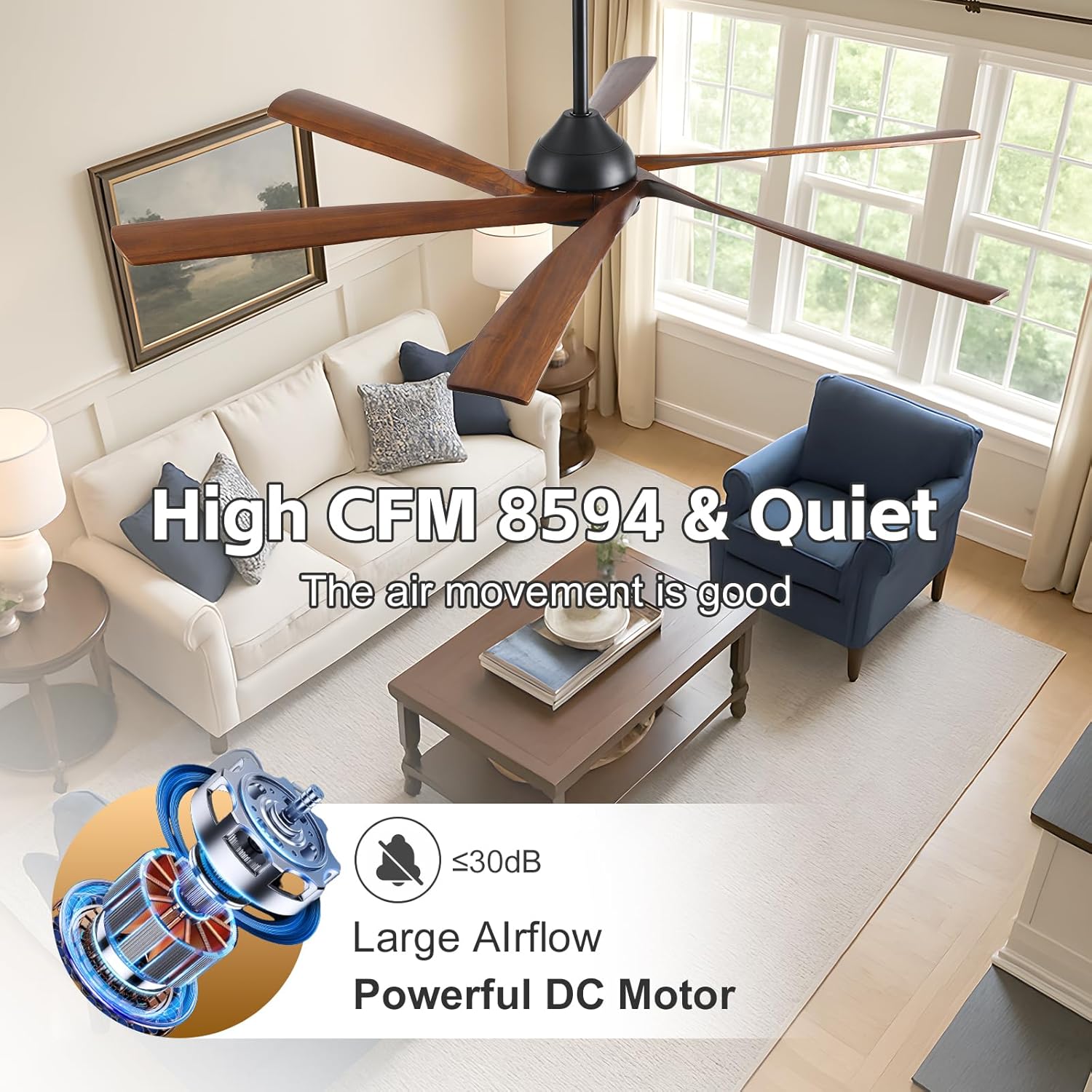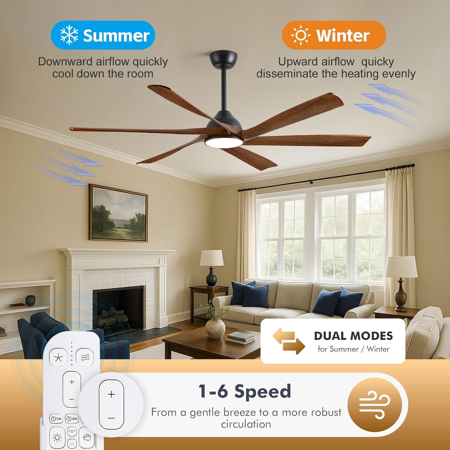 - ใPowerful Six-Speed Airflow for Year-Round ComfortใExperience a refreshing breeze with our high-performance ceiling fan. Featuring six speeds, it delivers rapid, continuous cooling for spaces like living rooms, patios, or large open areas. Designed for efficiency, it circulates 85% more air than standard fans while running quietly, ensuring comfort without noise. Perfect for large rooms or any space needing powerful airflow without compromising performance. Stay cool and comfortable all year long