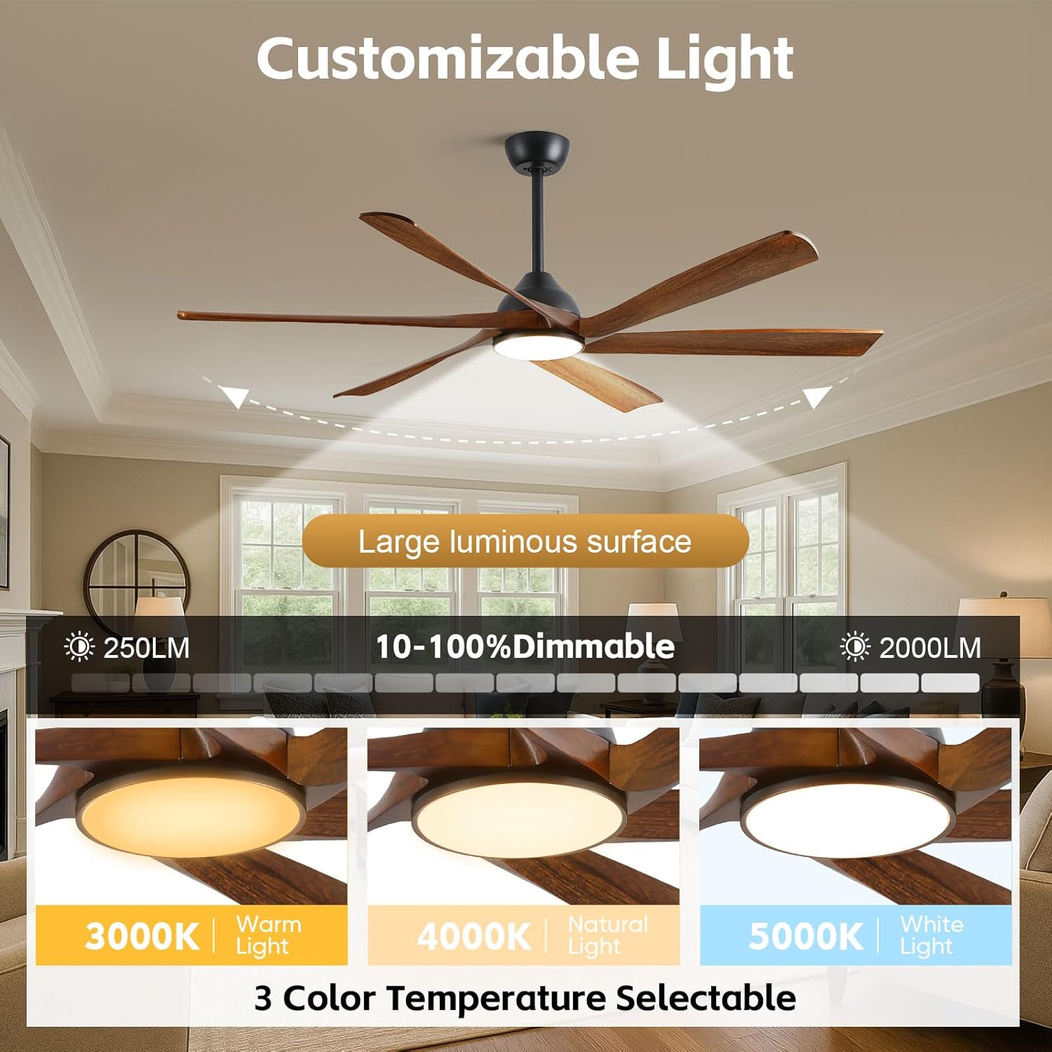 - ใSolid Wood Ceiling Fan with LightใElevate your space with a stunning 60 inch wood propeller ceiling fan. Featuring six blades made from carefully selected natural solid wood, the creative propeller design and rich wood grain texture will instantly enhance your home decor. Unlike standard ABS fans, the durable, warp-resistant construction ensures a longer lifespan, with moisture-resistant and non-fading performance thatโs perfect for both indoor and covered outdoor spaces, including living rooms, bedrooms, kitchens, patios, porches, gazebos, garages, offices, and more