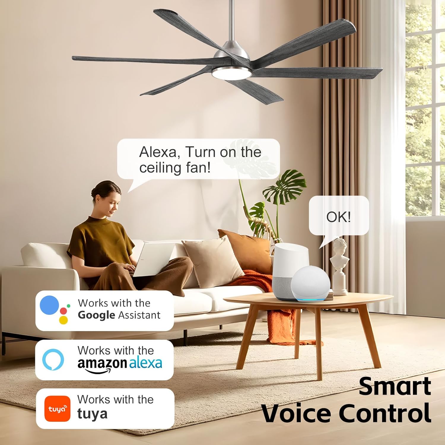 Specification: 60″ Smart Outdoor Ceiling Fan with Light – Modern Gray Wood Blades, Quiet DC Motor, High CFM, Compatible with Alexa, Google Home & Smart App, Damp Rated for Covered Patio,… by ShreeFindee