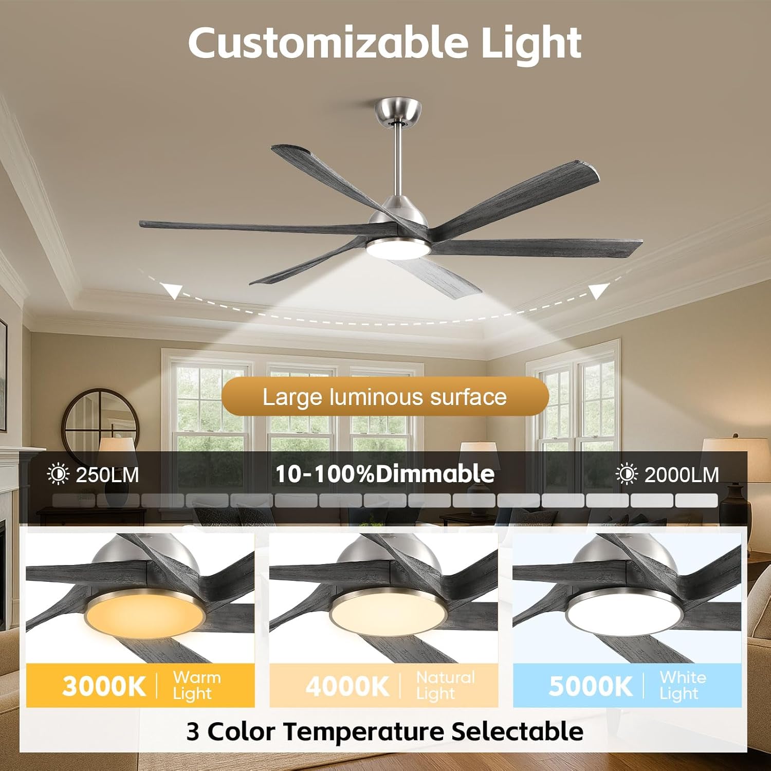3 reviews for 60″ Smart Outdoor Ceiling Fan with Light – Modern Gray Wood Blades, Quiet DC Motor, High CFM, Compatible with Alexa, Google Home & Smart App, Damp Rated for Covered Patio,… by ShreeFindee