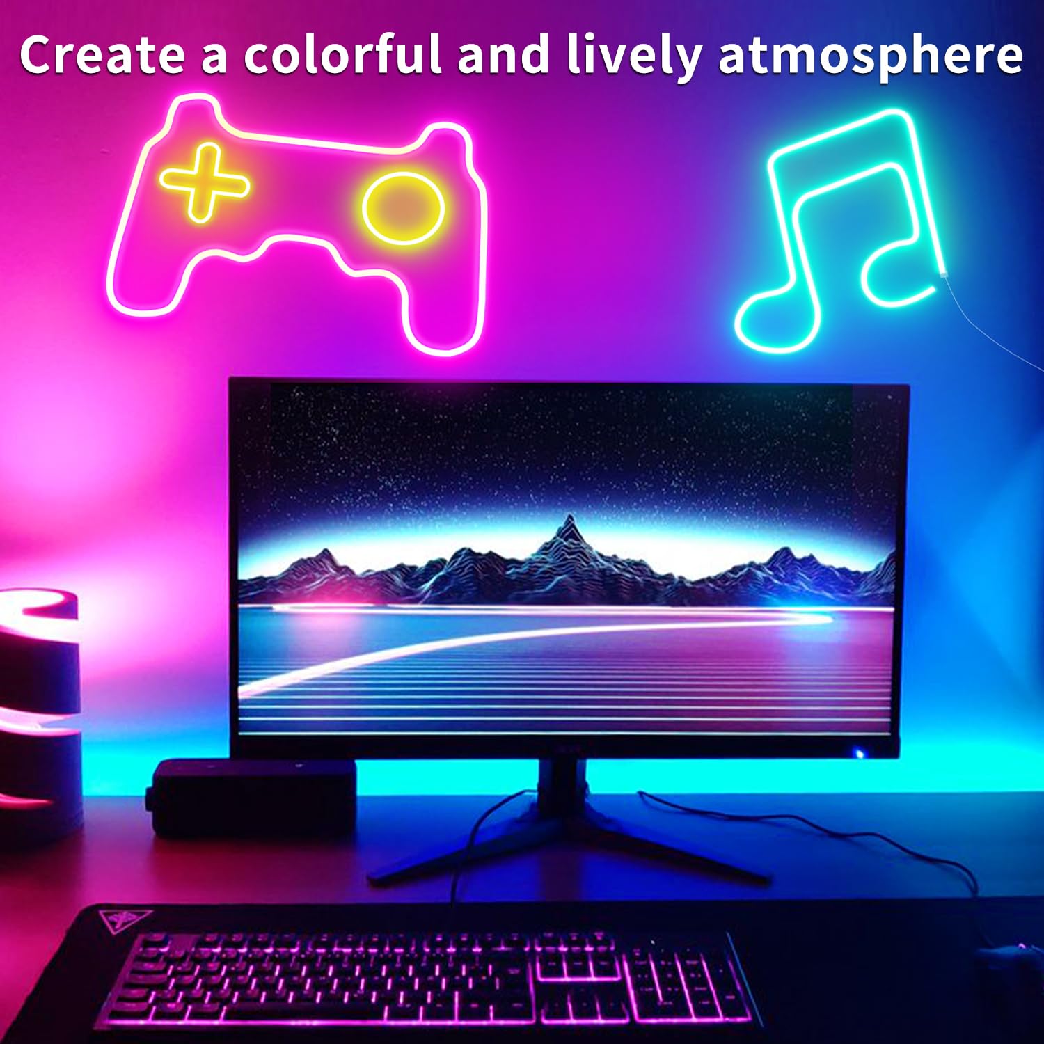 - 【Shape It to Your Desire】segrass Flexible neon led lights for bedroom can be easily bent into different shapes. You can simply install them around the contours of objects or unleash your imagination to bend them into shapes like hearts, guitars, game controllers, and more to match any style you desire. (Tip: secure them with the included screws and clips)