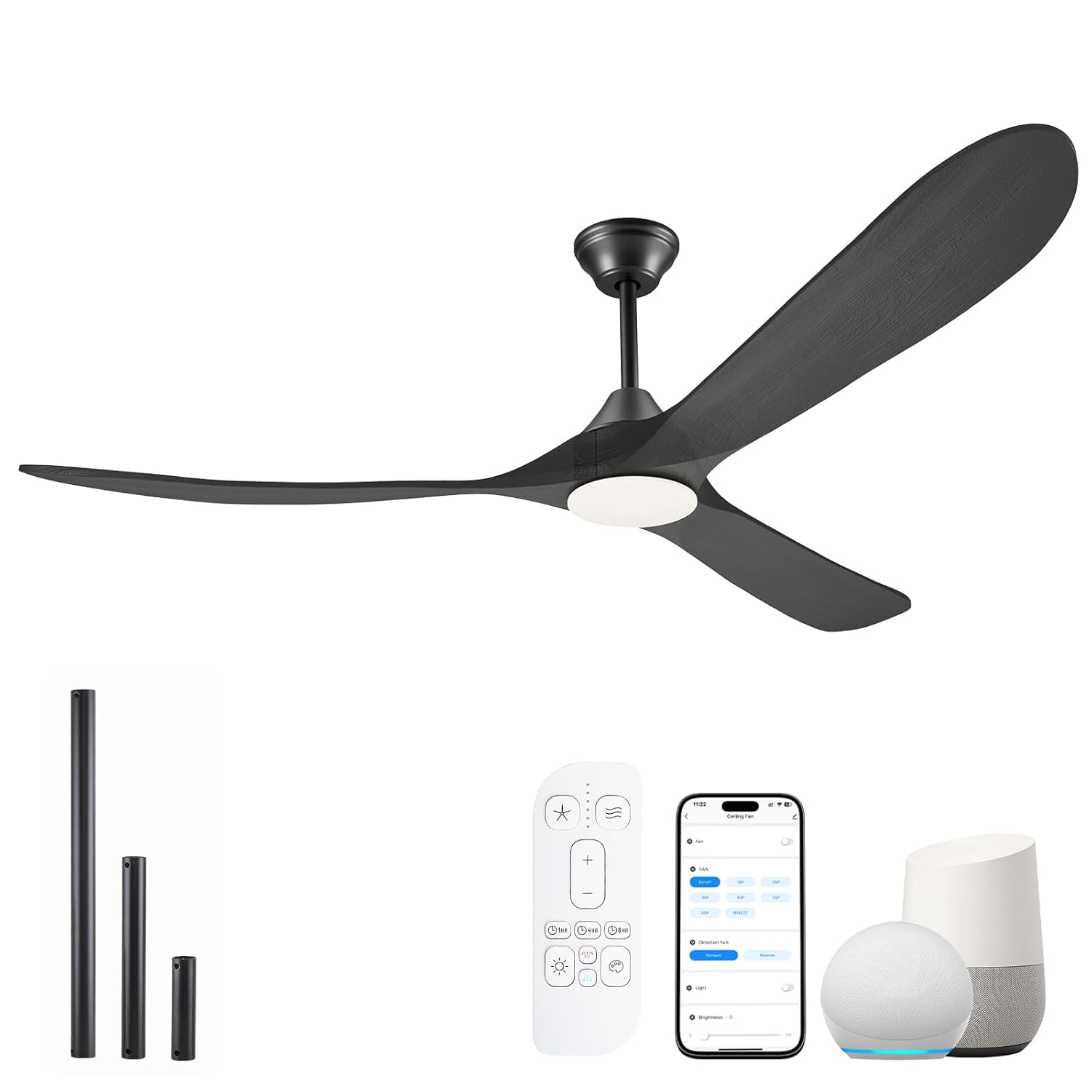 Photos: 70 Inch Smart Ceiling Fan with Light, 3 Wood Blade Large Black Ceiling Fan with Light, Quiet Reversible DC Motor Ceiling Fan with Remote/Tuya App, Compatible with Alexa Google… by ShreeFindee